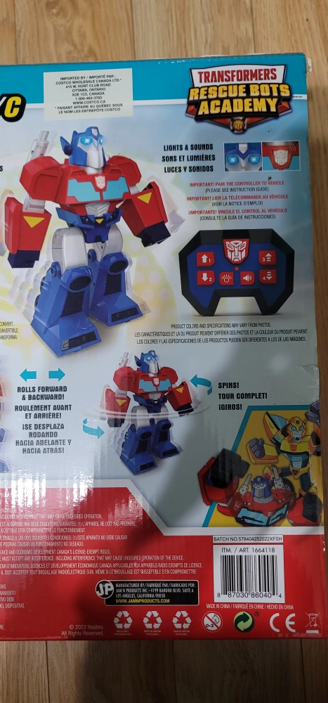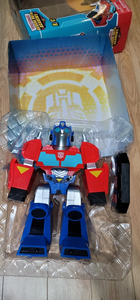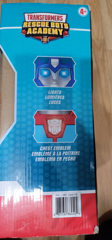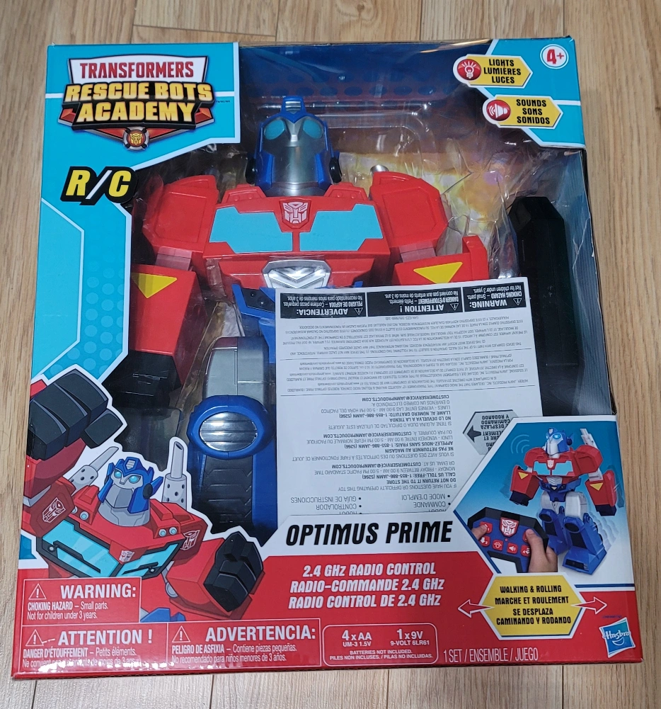 Selling a brand new Transformers Rescue Bots Academy Optimus Prime R/C! It features lights and sounds. It walks, rolls, and spins. Includes a 2.4 GHz radio control. Recommended for ages 4+.