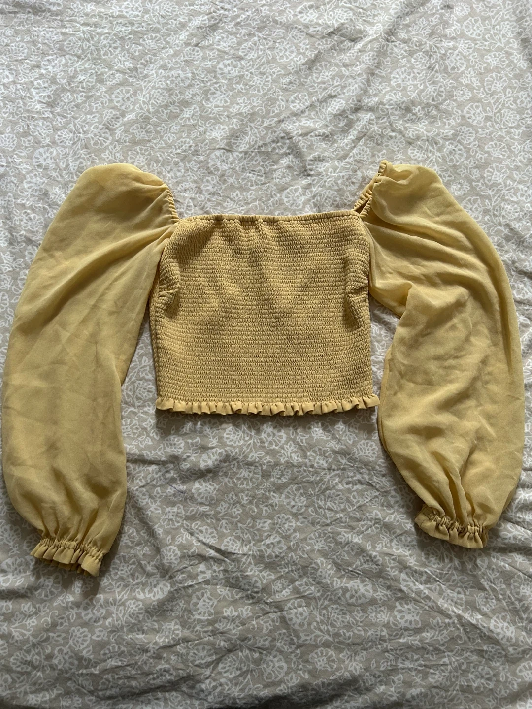 Buy & SellWilfred- Yellow Smocked Crop TopWilfred- Yellow Smocked Crop Top$20A cute yellow crop top with a smocked bodice and long, sheer sleeves! Refer to the last image for size guide (in inches)ConditionLike newSizeSBrandWilfredWHERE TO MEETHigh Park StationView MapSELLERverifiedgabieHigh Park N1104 reviews0 chats·1 favorites·9 viewsSEND CHAT TO SELLERHi gabie! I’m interested in your listing.Hi gabie! I’m interested in your listing.Get the Karrot app to chatSign In to chat