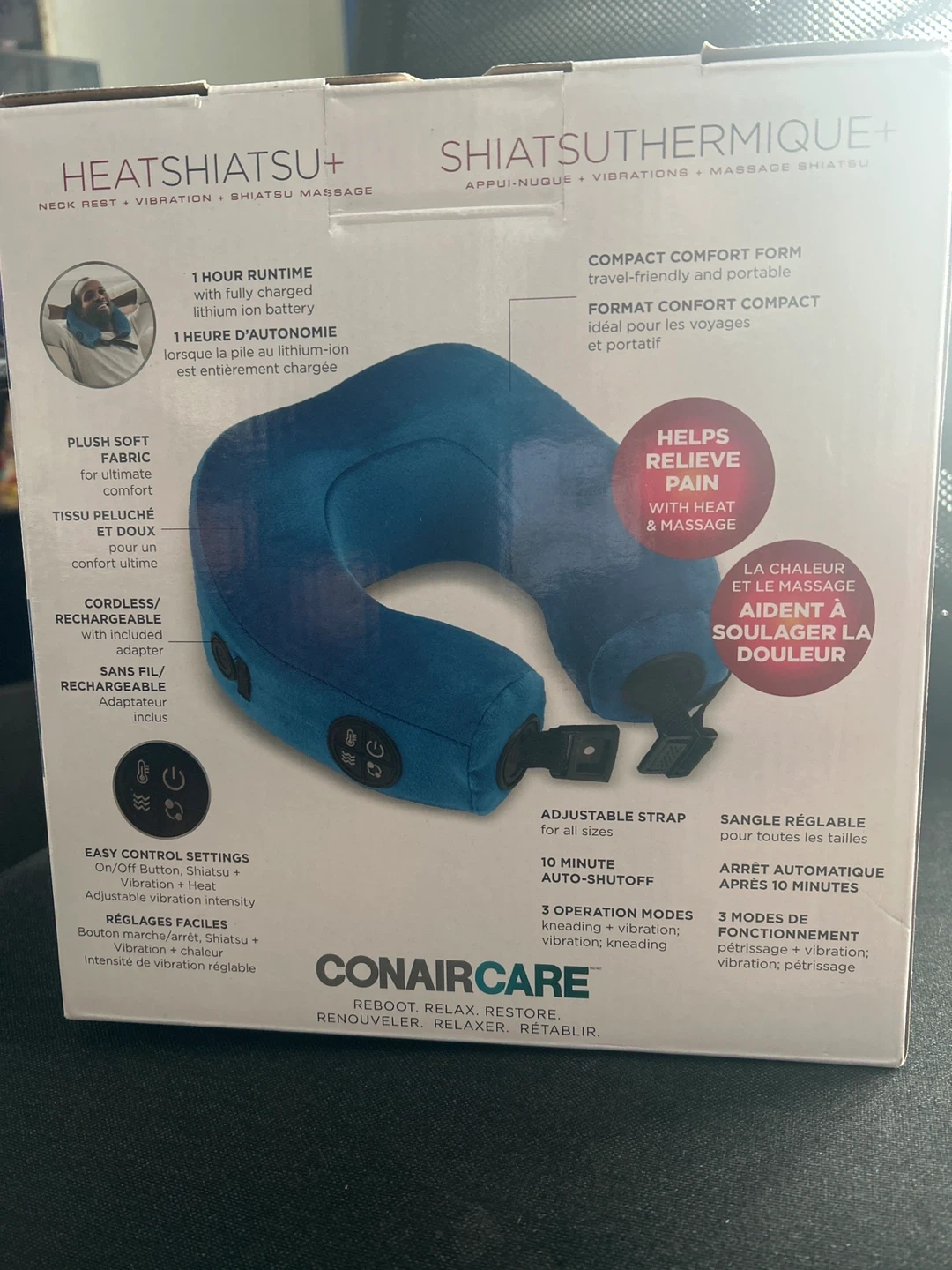 Selling a brand new ConairCare Heat Shiatsu+ neck rest with vibration and shiatsu massage! It comes in the original box and is ready to help relieve pain with heat and massage.