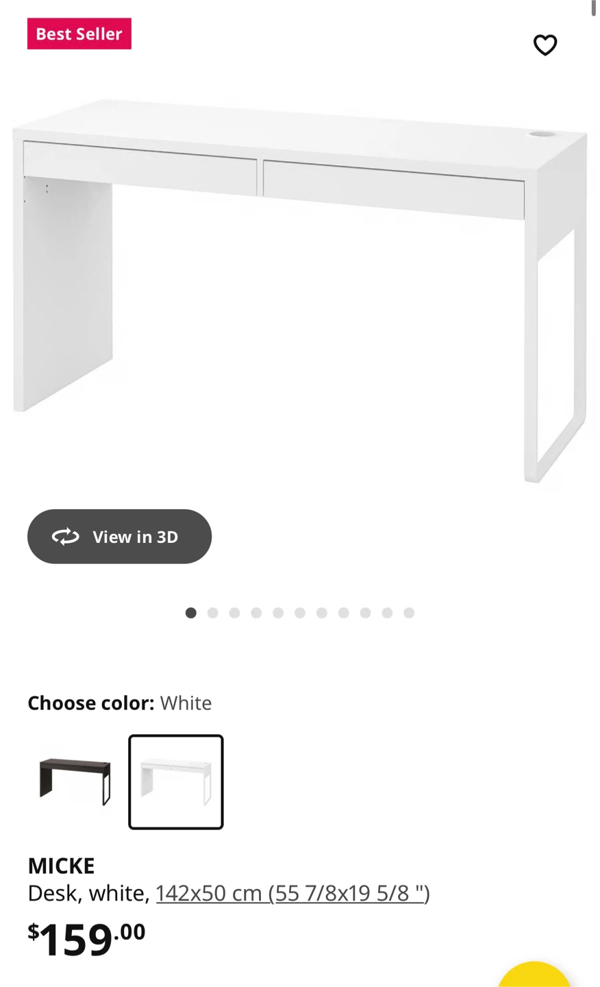 Ikea Micke Desk with Drawers (White)