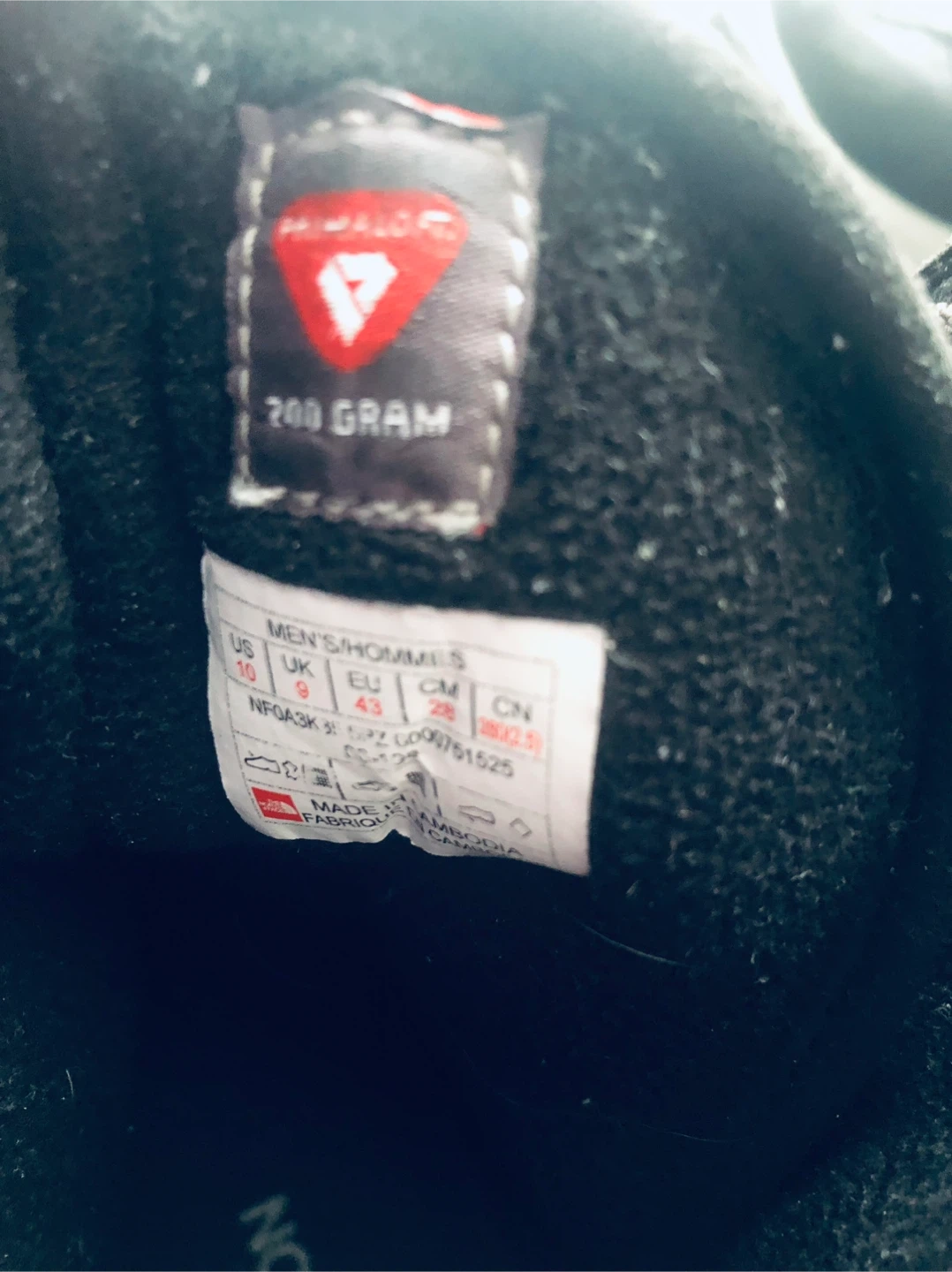 Selling a pair of The North Face boots. Men’s size US 10, UK 9, EU 43, and CM 28. The boots are insulated with 200 grams of insulation to keep your feet warm and cozy! These are all bock with white sole. the lighting looks like two colour but they’re all Black