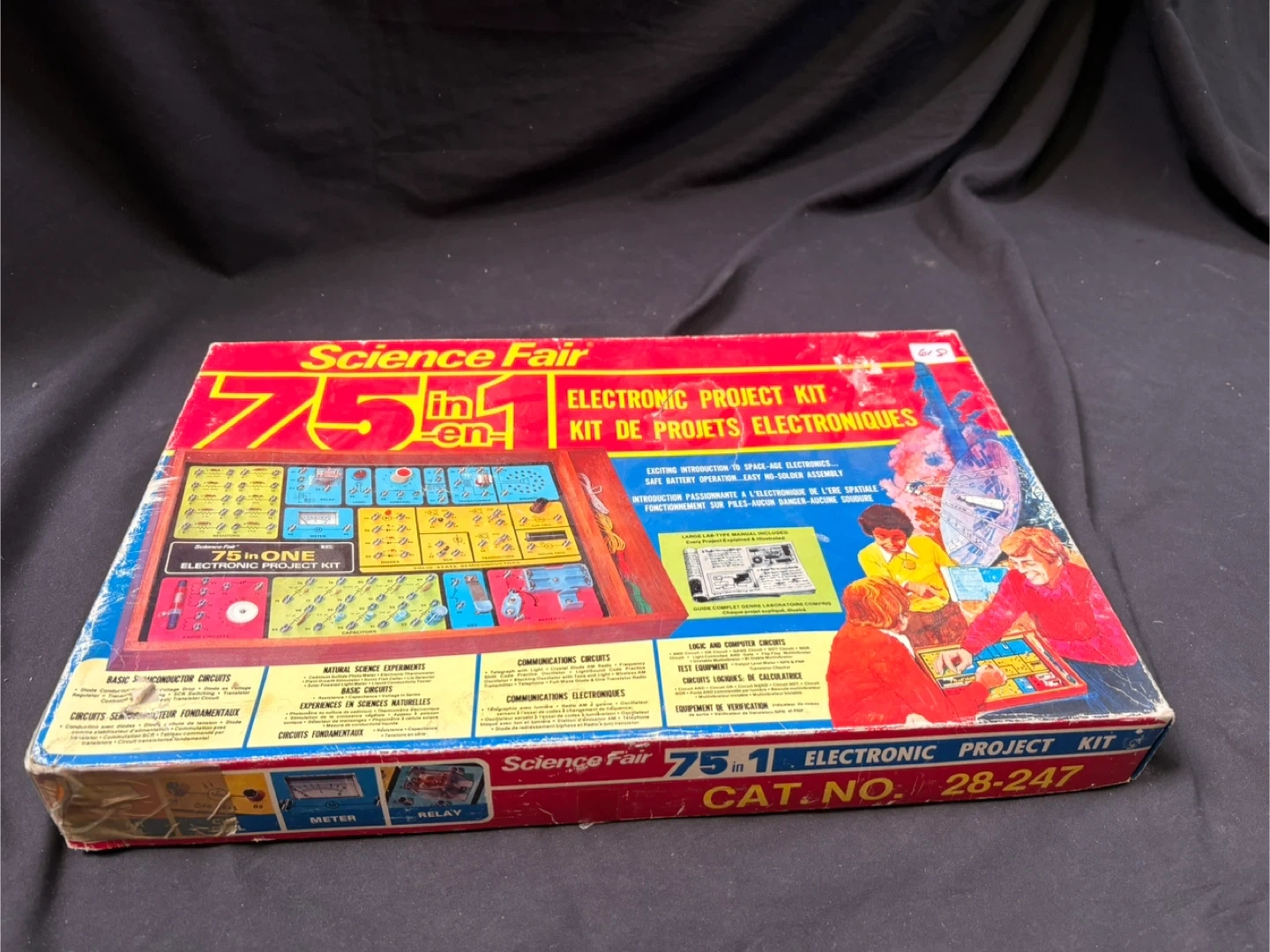 Selling a vintage Science Fair 75-in-1 Electronic Project Kit! It comes in its original box and looks like it has some of the components. A really fun and educational kit!