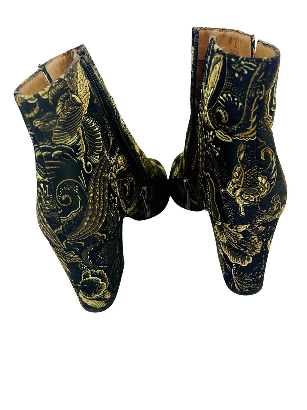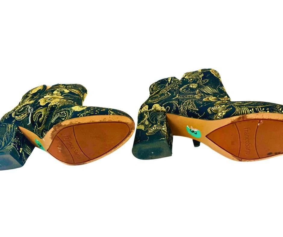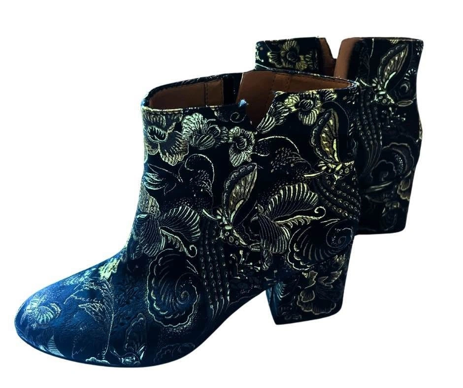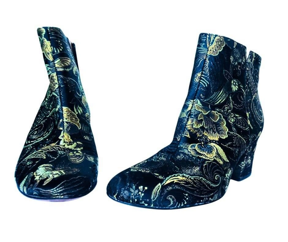 Franco Sarto Brocade Ankle Boots Olympia Black/Gold In Size 8M | 38 EU
