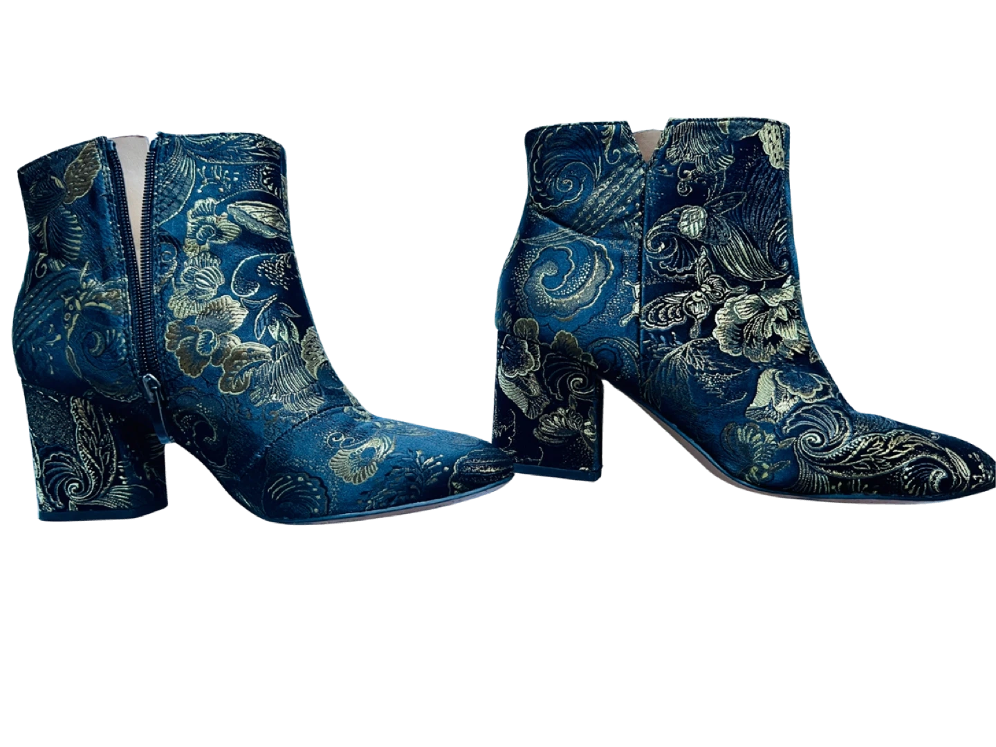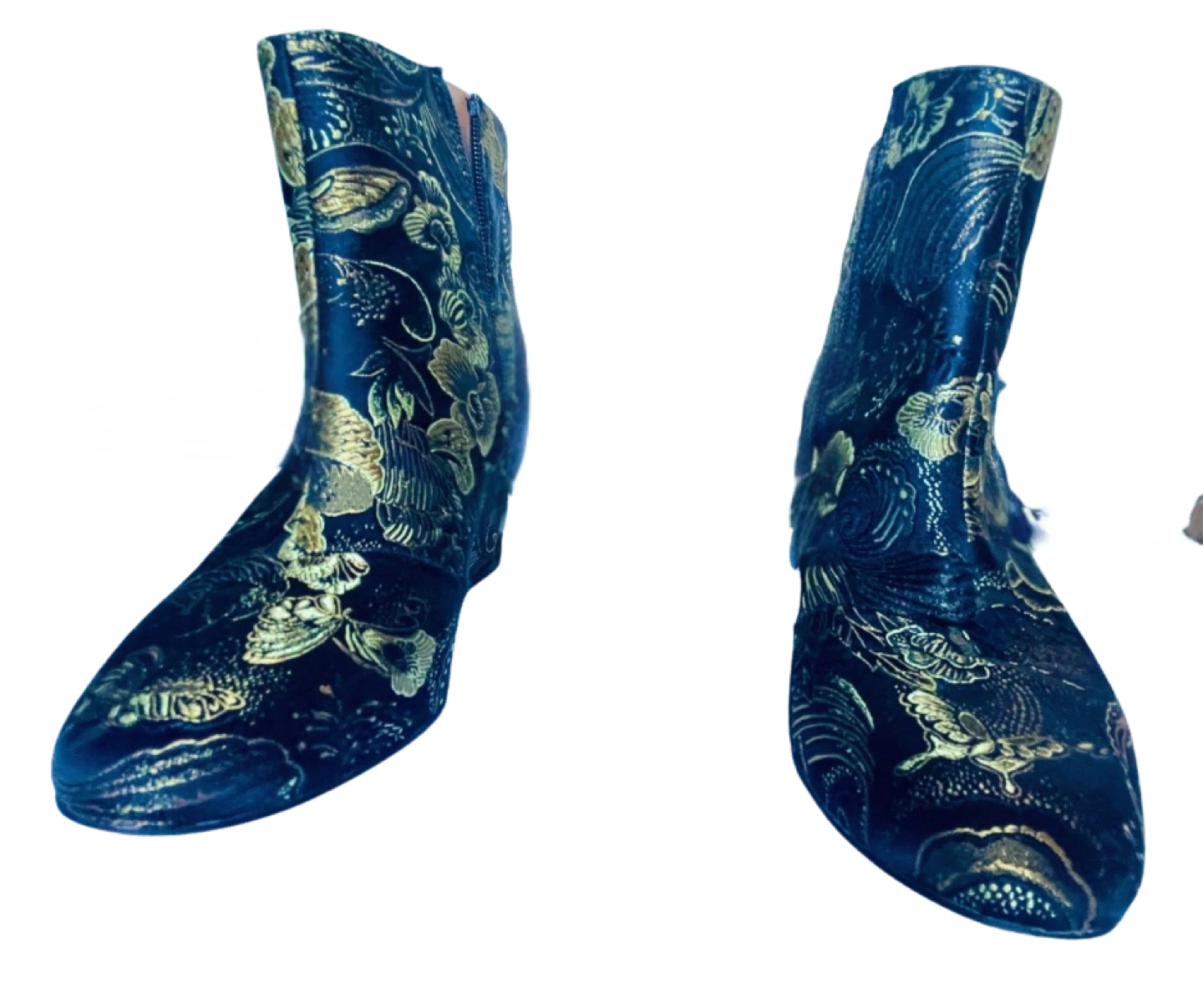 Beautifully gold embroidered ankle boots - wear on a night out or to dress up jeans & T ‘fit. Versatile, edgy, glam.