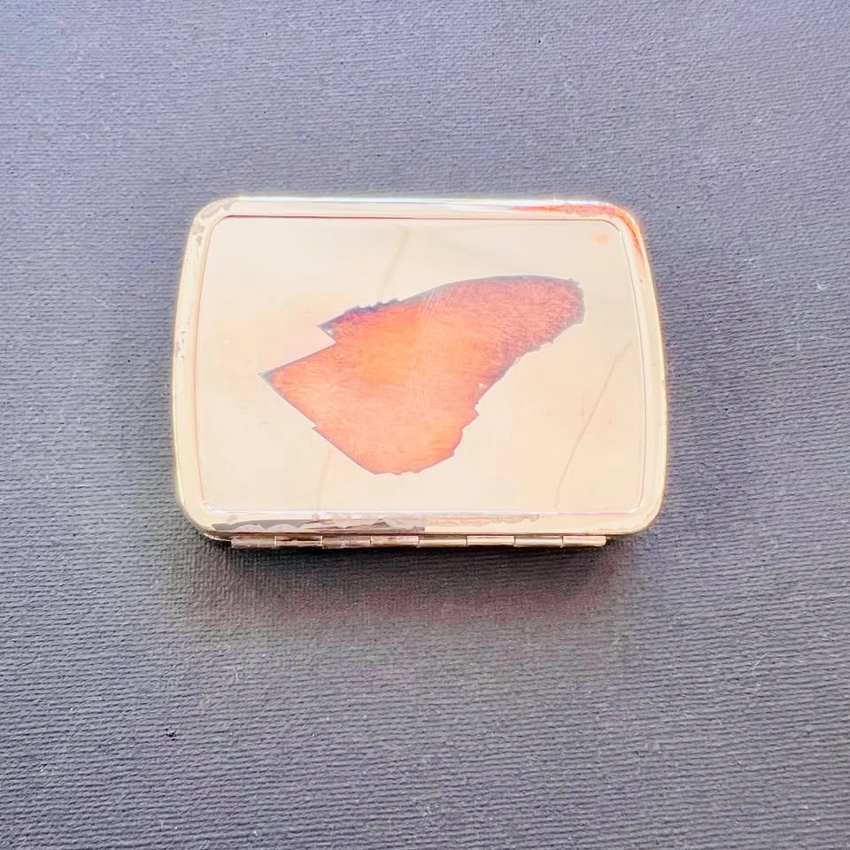 NEVER USED. Some light discoloration on underside of mirrored case. Good vintage condition, wear commensurate with age, see pics. c1990s-2000s