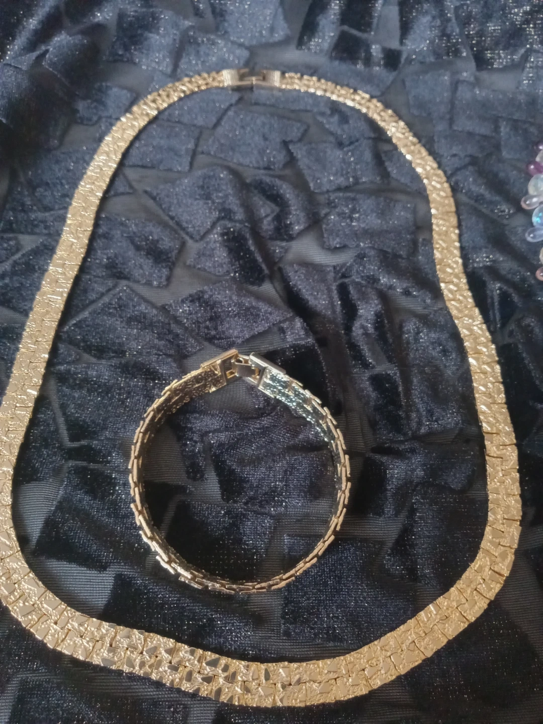 Selling a necklace and bracelet set. The necklace is gold in colour and features a pearl accent. Also including a beaded necklace!