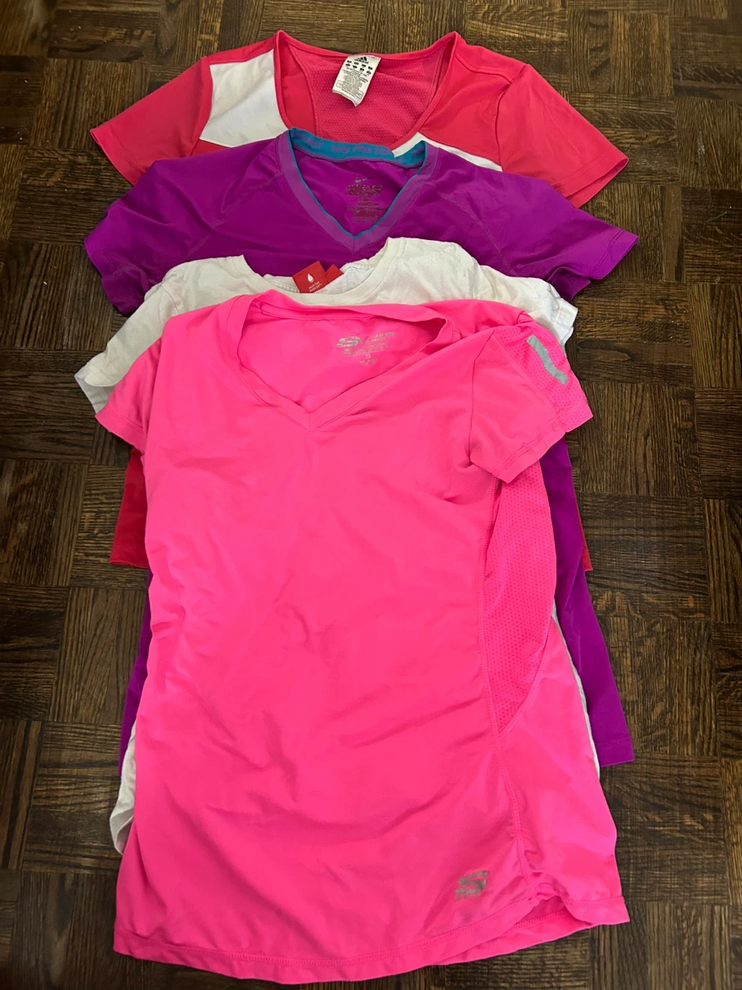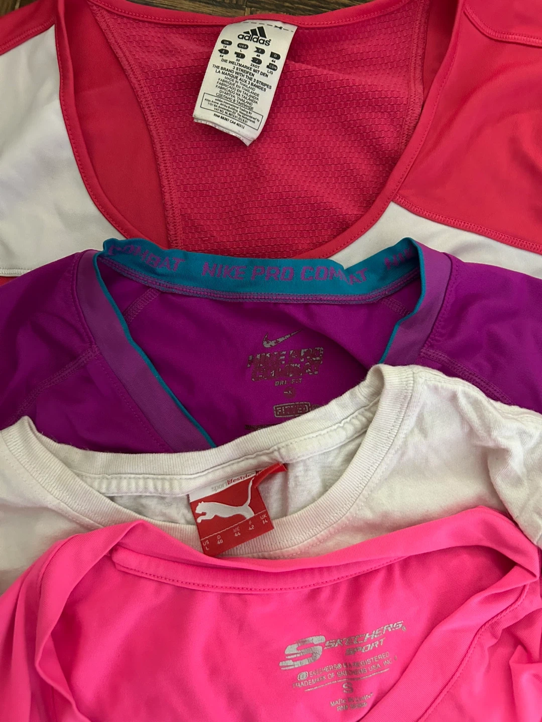 Selling a bundle of activewear t-shirts, all in size small! There's a mix of brands including Adidas, Nike, Puma, and Skechers. Great for workouts or casual wear!