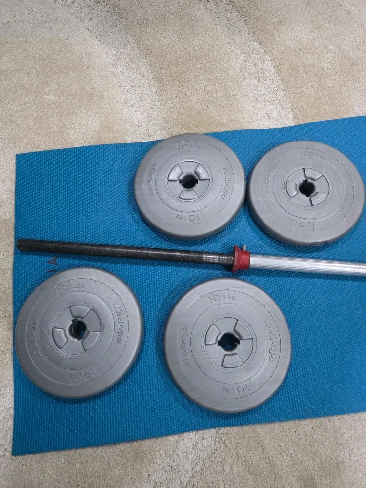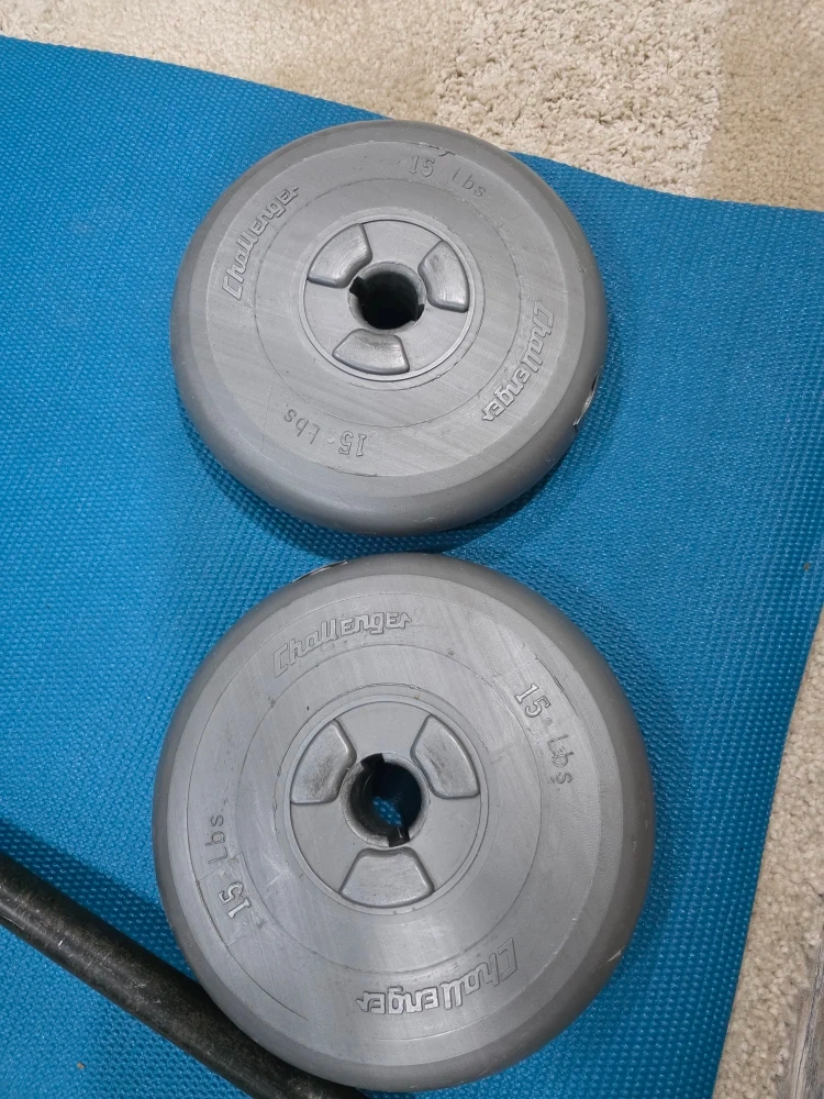 Selling a Challenger weight set, perfect for home workouts! Includes a barbell,
