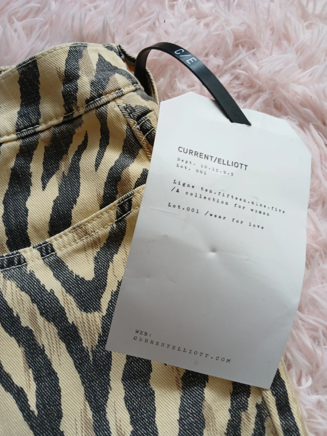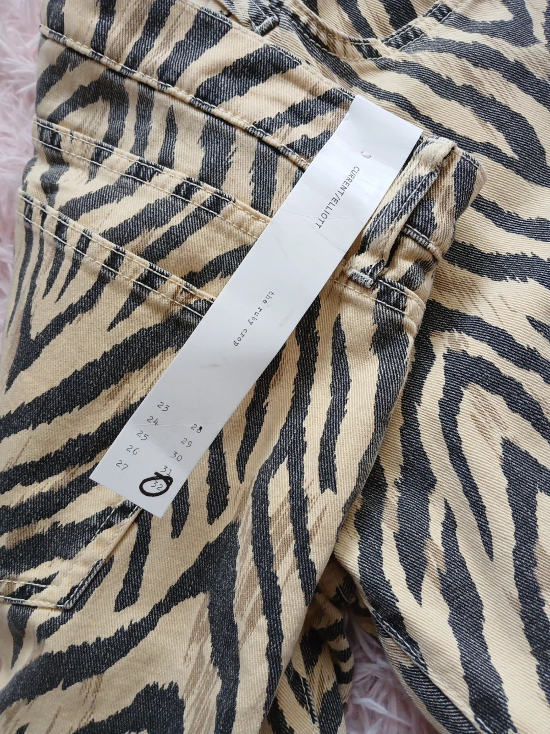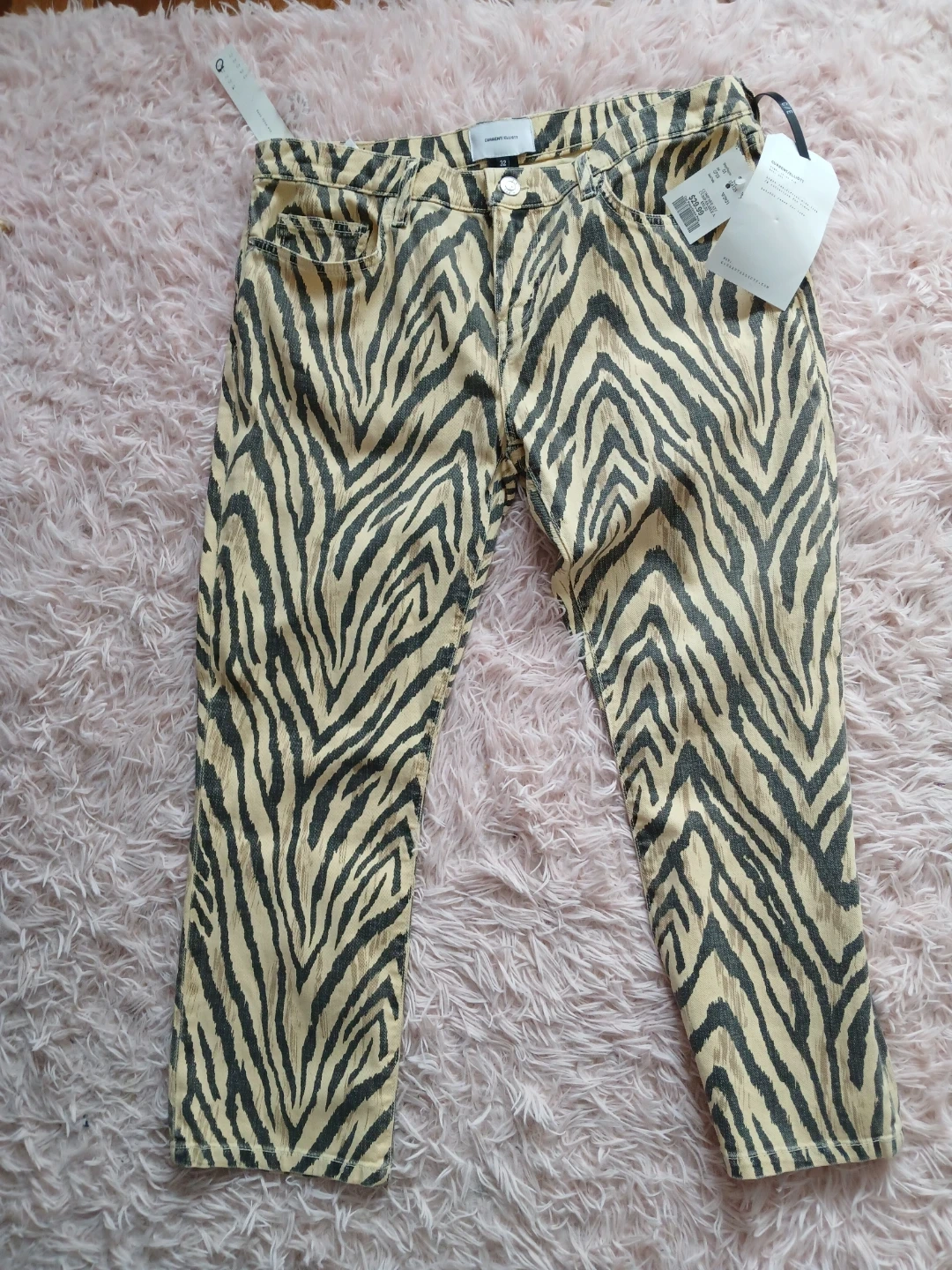 These Current/Elliott jeans feature a stylish zebra print! They are a size 32 and are in new condition with tags still attached. Perfect for adding a bold statement to your wardrobe!