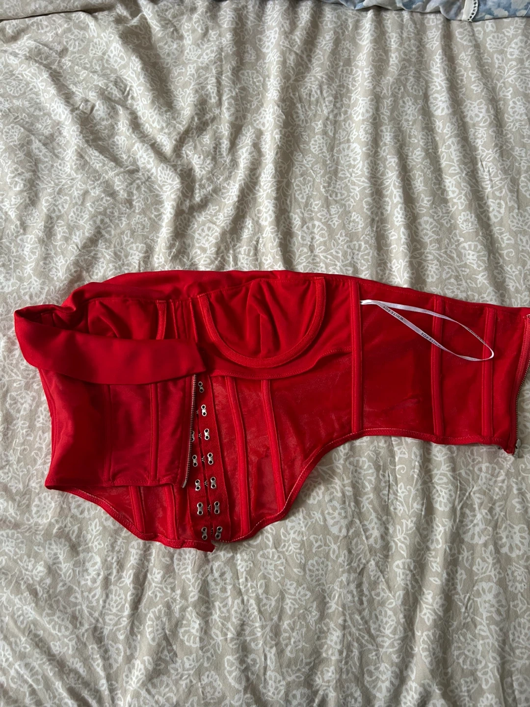 Selling a White Fox red corset top in size medium! It's in great condition and would look amazing for a night out or special occasion. The corset features a zipper and hook-and-eye closure at the back.