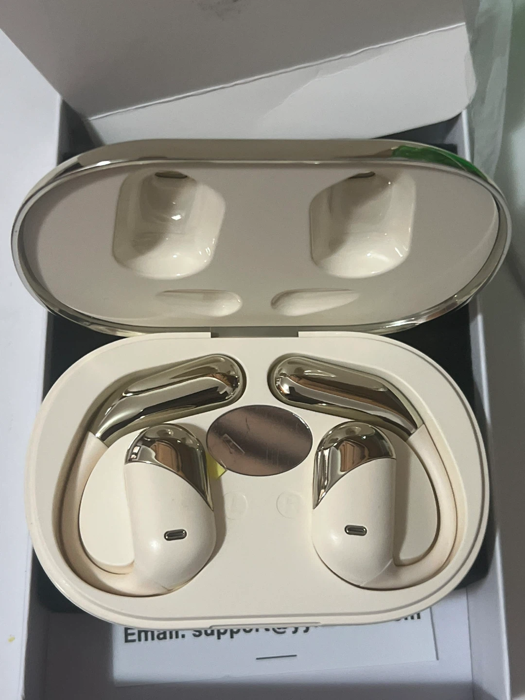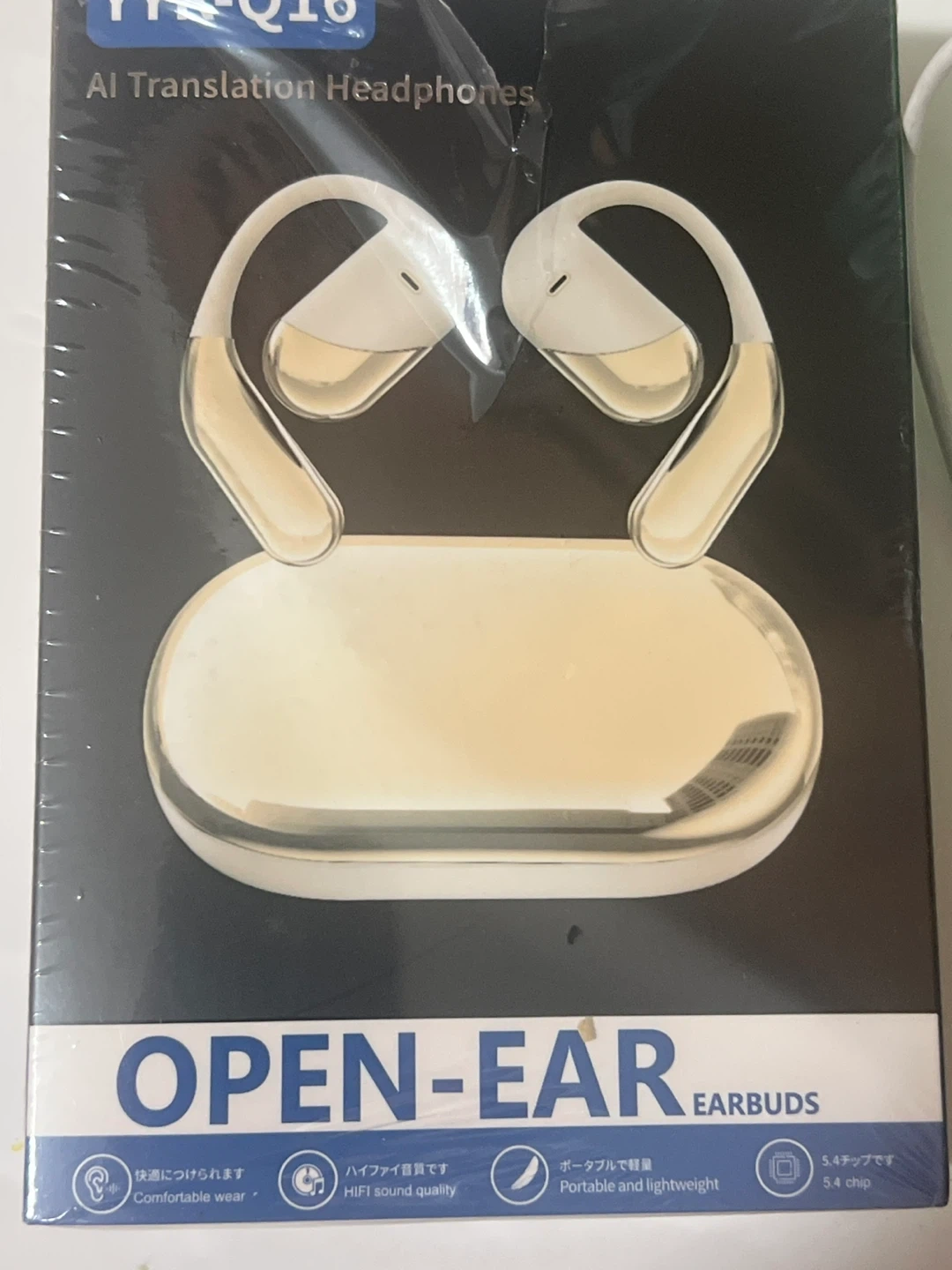 Selling a pair of YY-Q16 AI Translation Headphones! These are open-ear earbuds and come with a charging case. They're designed for comfortable wear and provide HiFi sound quality. The earbuds are portable and lightweight, making them perfect for on-the-go use. They also feature a 5.4 chip.
