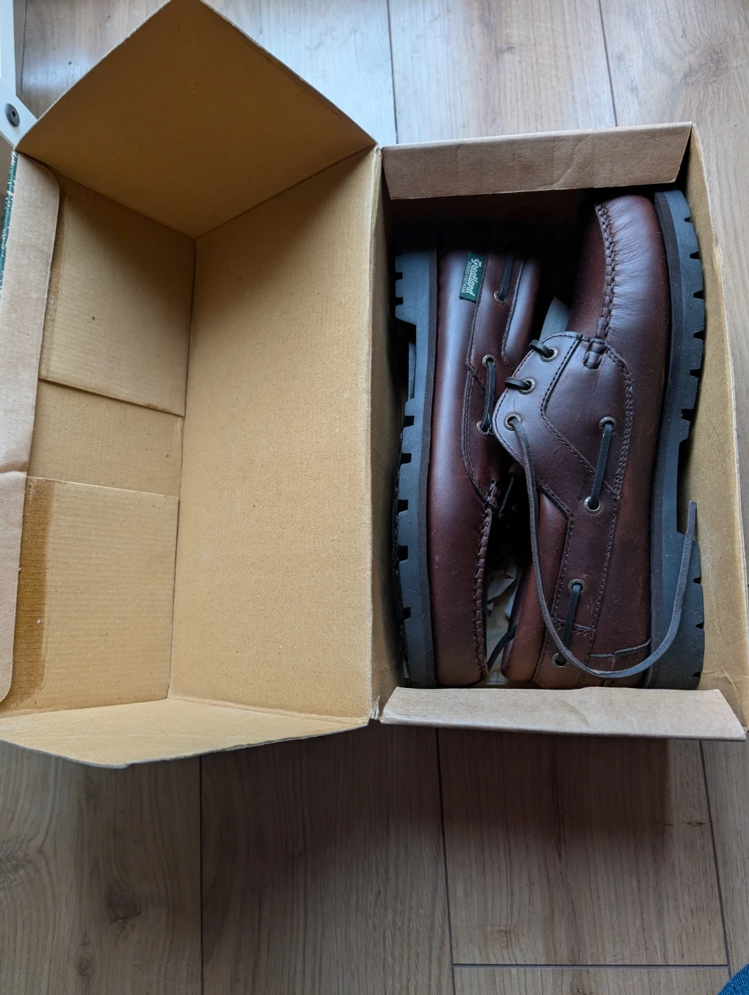 These Greenland boat shoes are made with genuine full-grain leather! They feature a rugged terrain rubber outsole and fully cushioned insole. The shoes are a nice brown colour and come with the original box