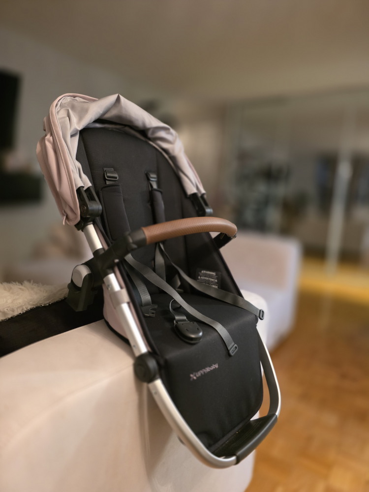 Selling an UPPAbaby RumbleSeat V2 in a lovely dusty pink colour! It features a silver frame and saddle leather accents. Comes with adapters. Only used 4 times.
