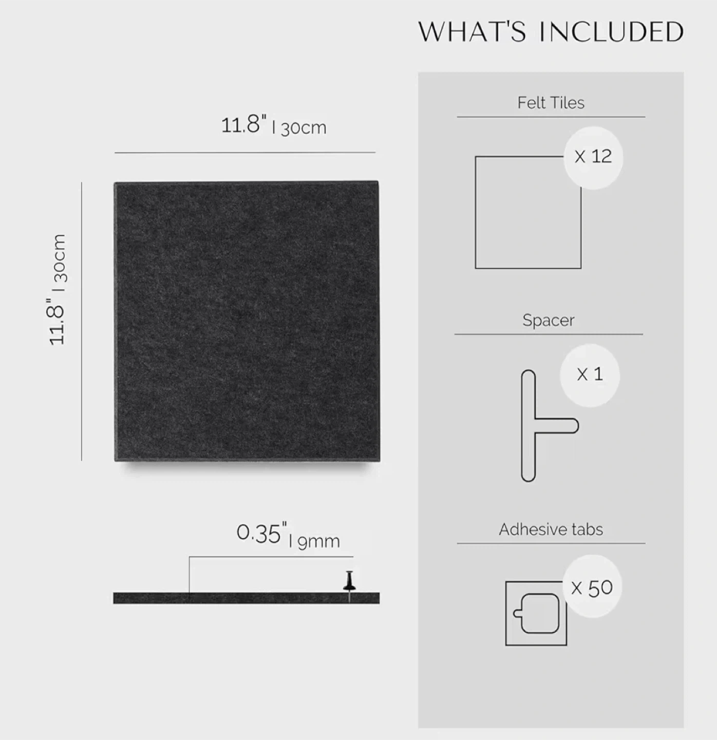 Felt Acoustic Wall Tiles - 12 Pack
