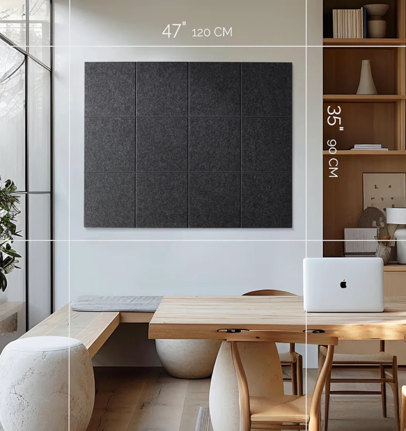 Large Cork Board for Office Black Felt Board Alternative - Felt Bulletin Board Tiles for Office Wall Decor, Push pin Board Wall Organizer for Office - Pack of 12 (Moonstone)