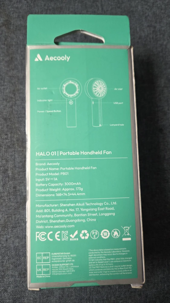Aecooly Halo 01 Portable Handheld Fan - New!