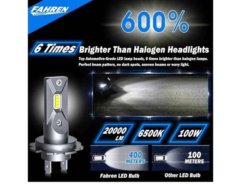 FAHREN H7 LED Headlight Bulb, Upgrade 600% Super Bright H7 LED Bulb, Non-Polarity Plug and Play All-in-One LED Fog Lights, No Adapter Required, Pack of 2
