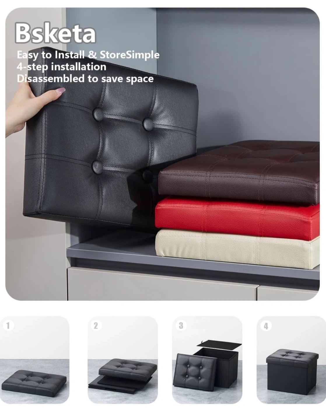 Storage Ottoman, Bsketa Folding Foot Stool with Thicker Foam Padded Seat Small Leather Storage Ottoman Bench Foot Rest for Living Room Foldable Coffee Table 17x13x13in,