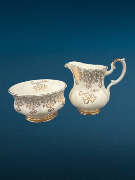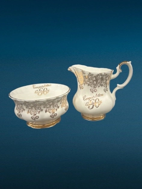50th Anniversary Vintage China Teapot, Teacup & Plates