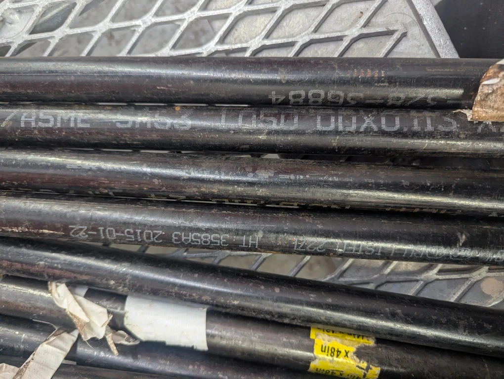 Selling a bundle of steel pipes. They appear to be marked with 'ASTM A53 / ASME SA53'. Each one looks to be 1in X 48in.