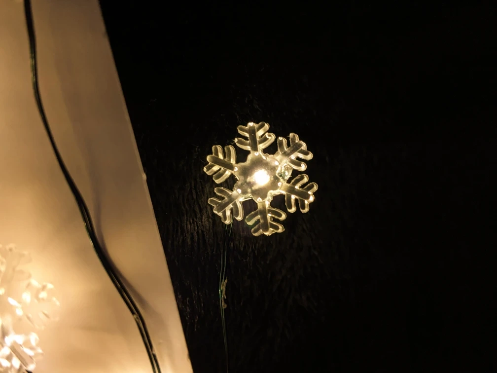 These lights are 8ft (2.4m) long and feature 24 warm white LED lights with snowflake shapes on a green wire.