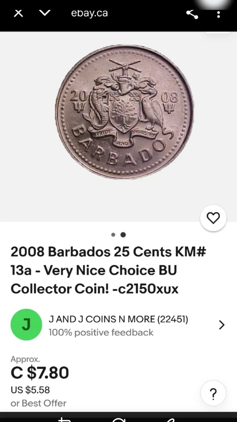 Selling a 2008 Barbados 25 Cents coin. It's in great condition and would be a nice addition to any coin collection.