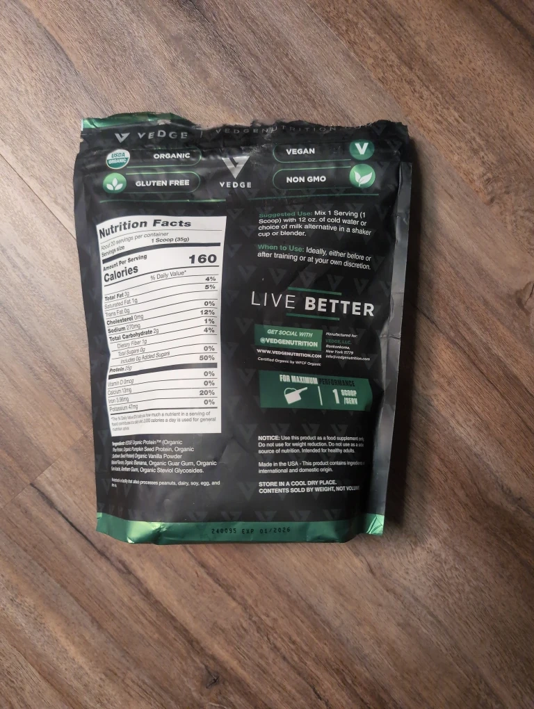 Vedge brand plant based protein powder, vanilla ice cream flavour. It's opened and about 3/4 full. It's just been sitting in my cupboard since I don't like it.