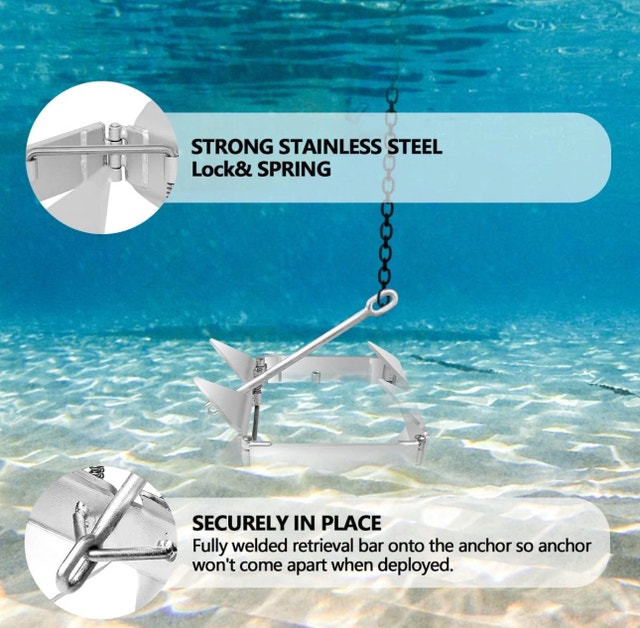 This brand new boat anchor is made from strong stainless steel, designed to securely hold your boat in place on sand, mud, or weed bottoms. Its double-sided design prevents dragging and sliding, ensuring your boat stays put, and it conveniently folds for easy storage.