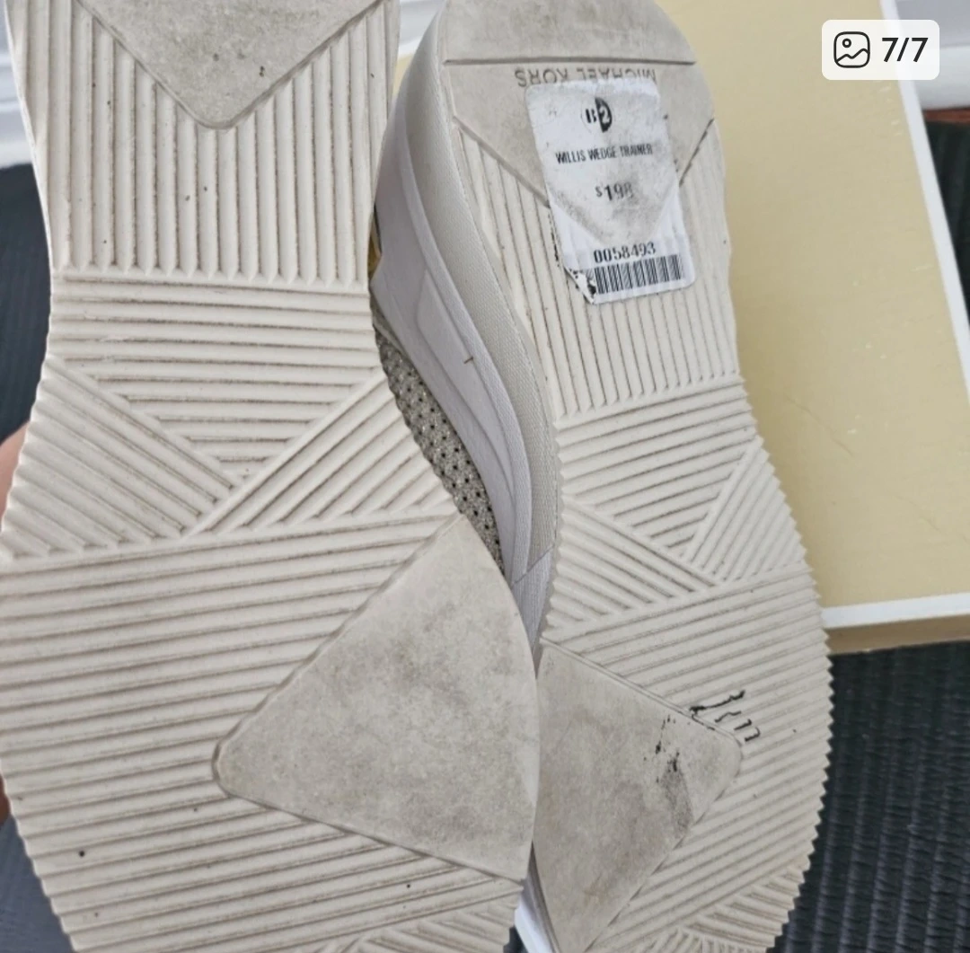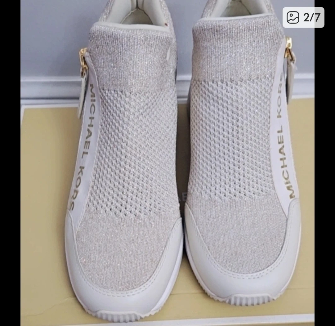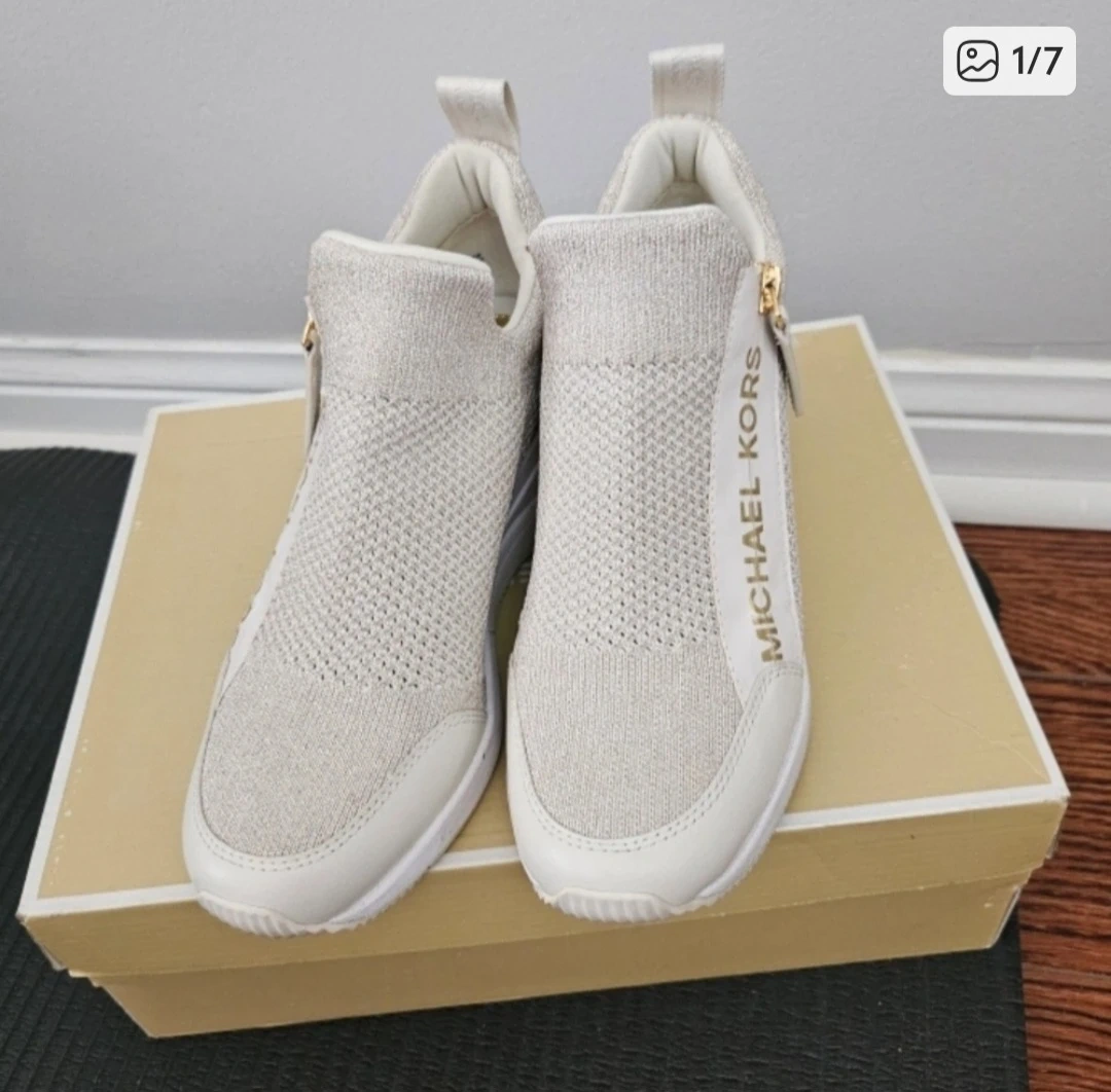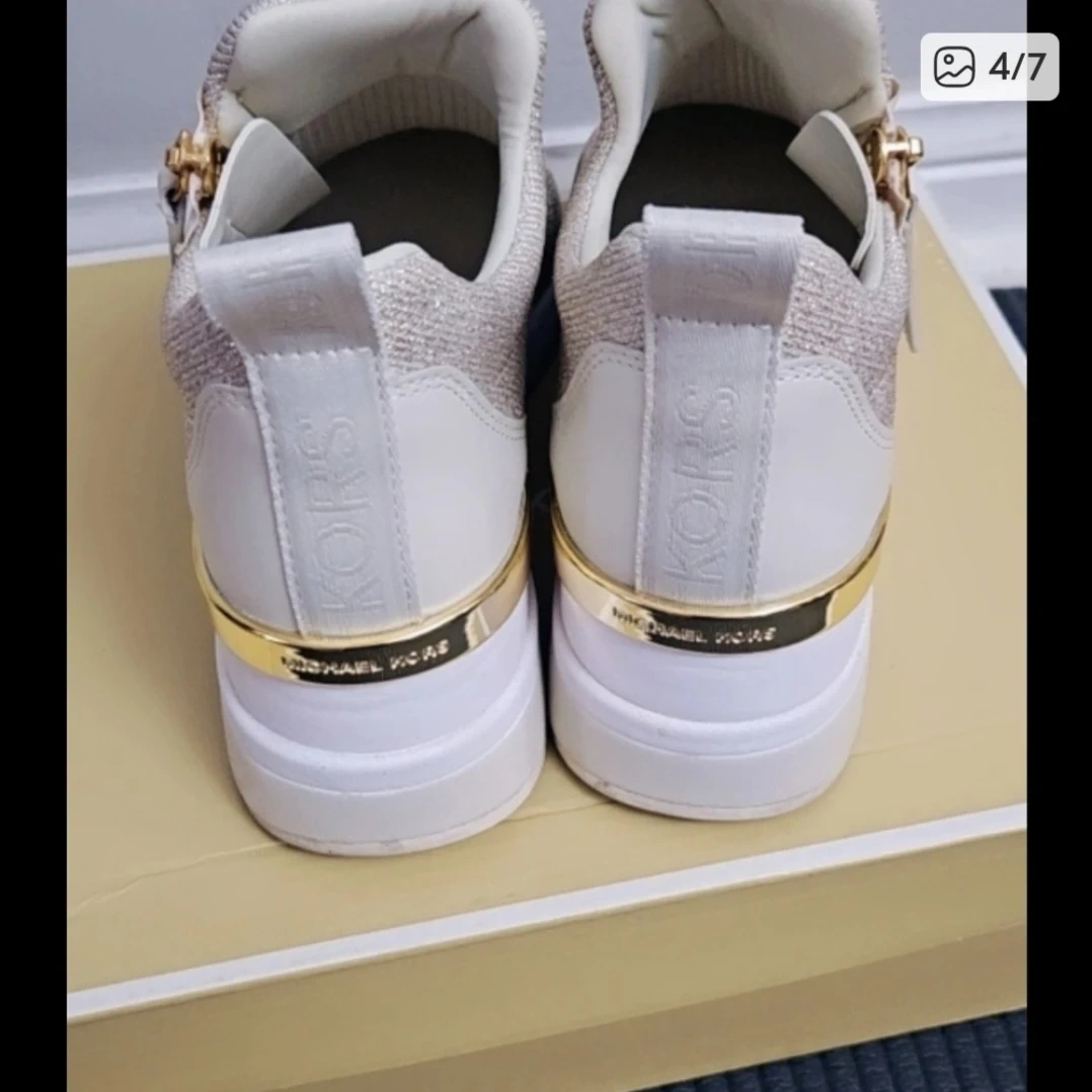 Michael Kors Willis Wedge Trainers in a neutral colour with gold detailing. They are in good condition and come with the original box. Retails for $198!