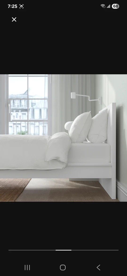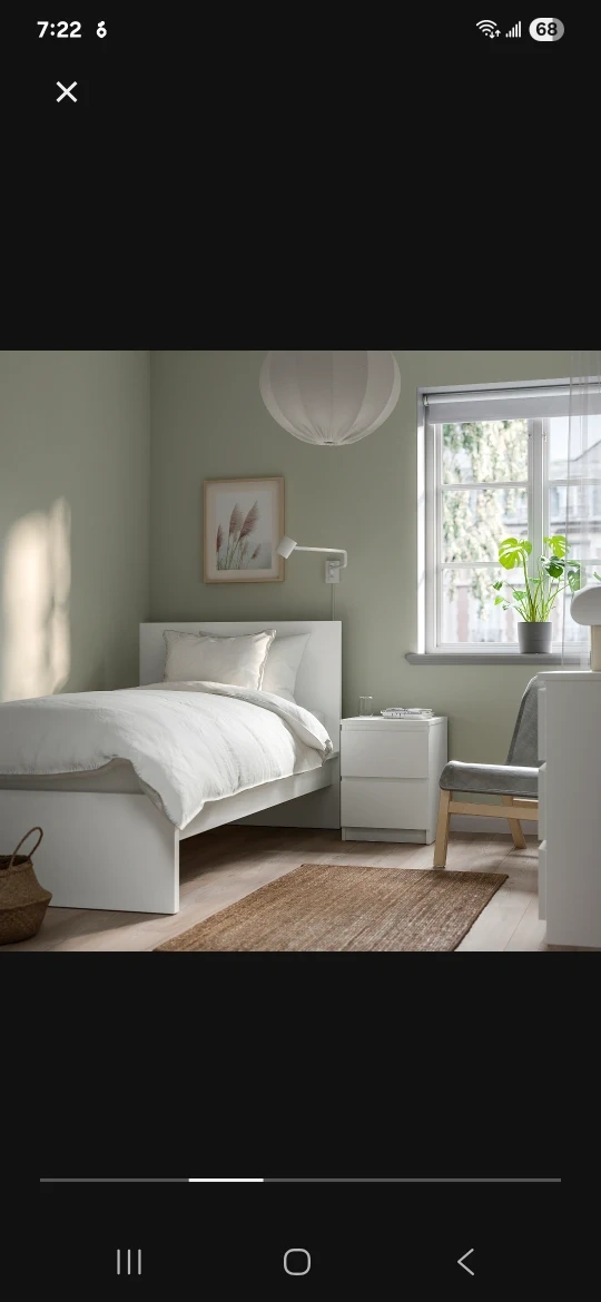 IKEA Twin Bed - White and very clean and almost unused (in storage). No scratches No damage. 44" W x 79" L x 39" H Disassembled and ready to carry out. Has all the screws and assembly parts. Like new! $70 OBO