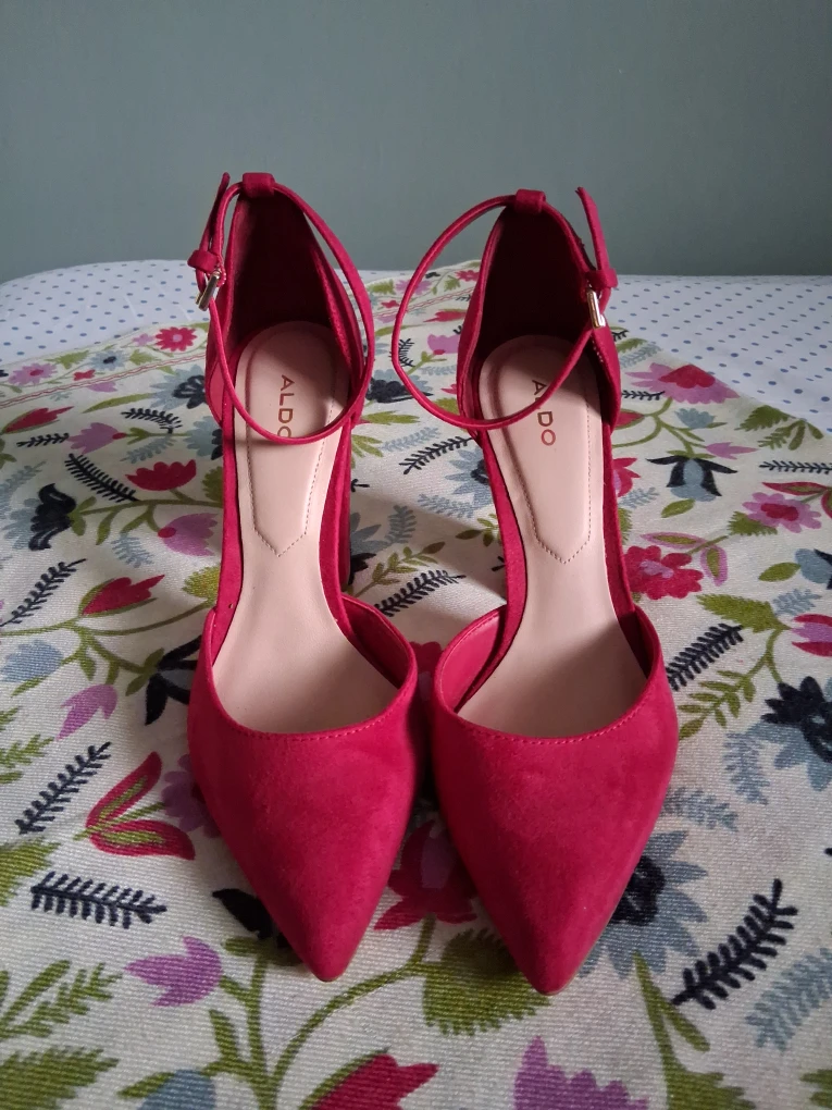 BOXING DAY. Aldo heels in a vibrant red colour! They are a size 8. The model name is Nicholes-62. Originally bought for $80! Worn once to a pretty party π₯³! Time for another Cinderella πΈ! π