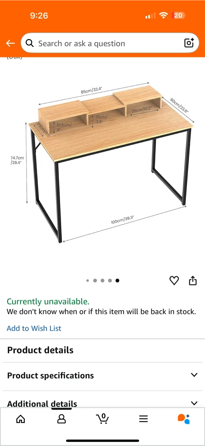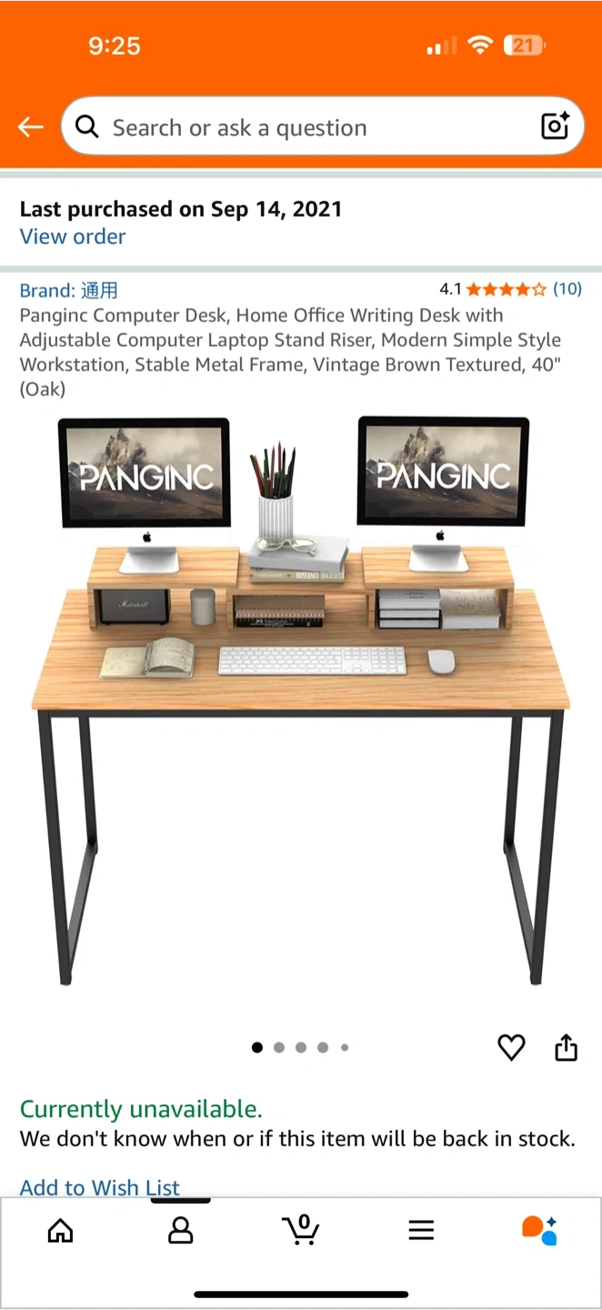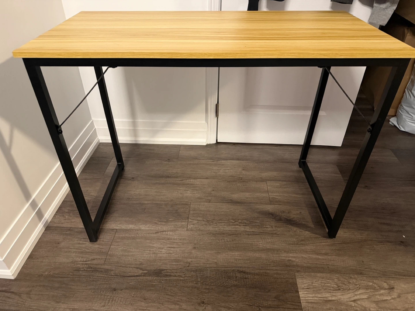 Selling a Panginc computer desk, perfect for a home office setup! It features a stable metal frame and a vintage brown textured top. The desk includes an iron strut for extra stability. It also has an adjustable computer laptop stand riser to help keep your posture correct