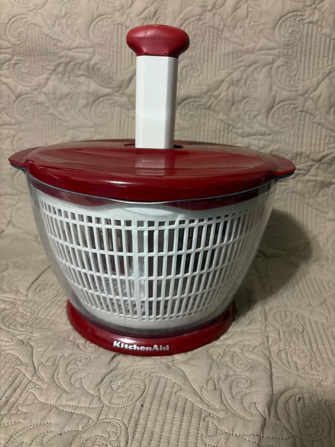 Selling a KitchenAid salad spinner in great condition! It's red and white and ready to help you make the freshest salads. Perfect for quickly washing and drying your greens and fruits.