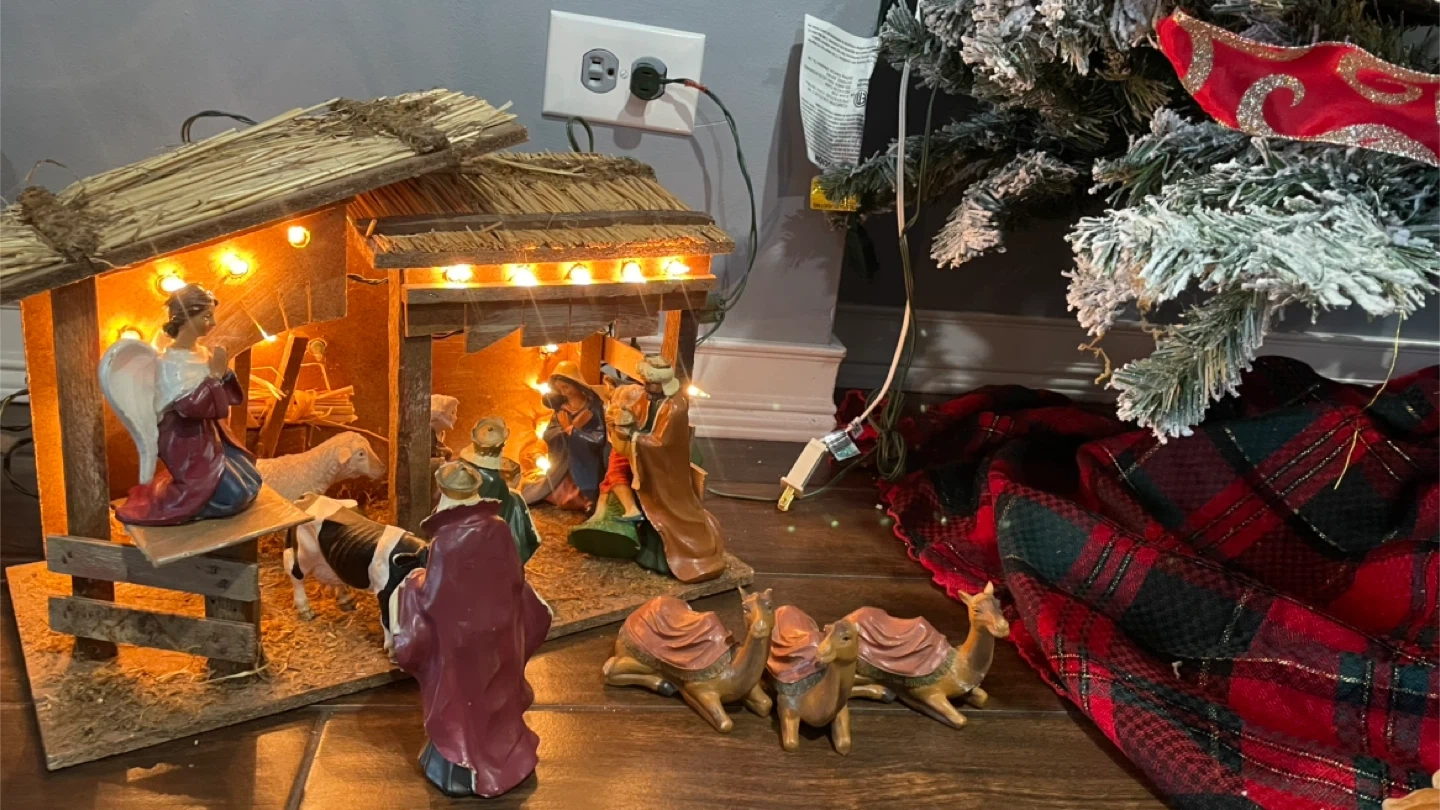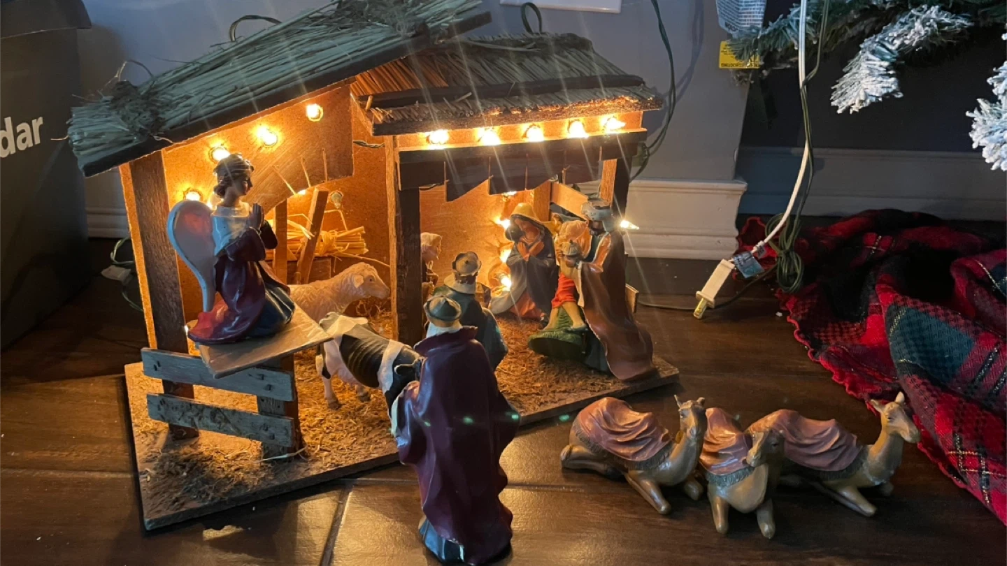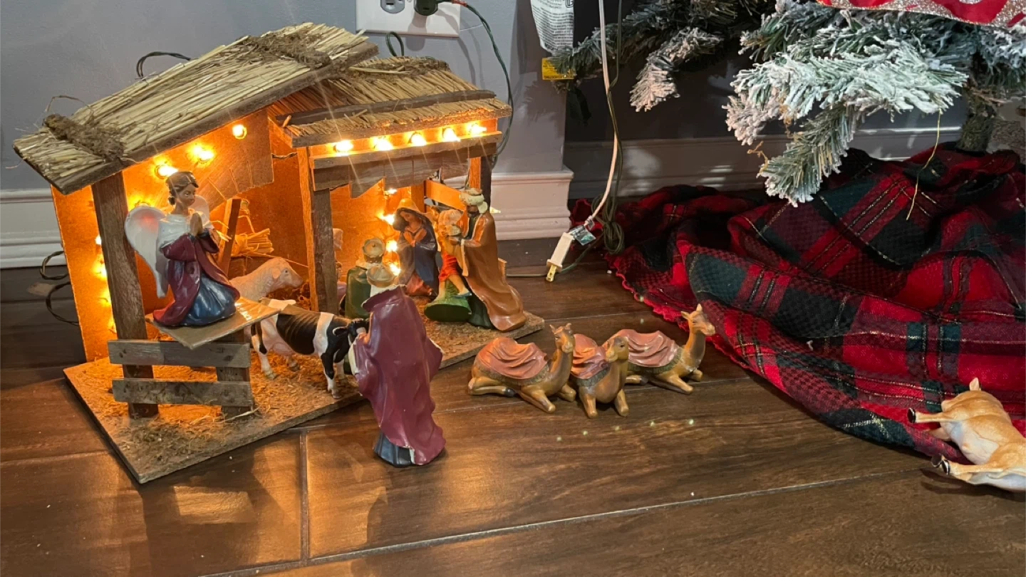 Nacimiento del niño Jesús muy bonito el pesebre Get into the holiday spirit with this charming nativity scene! It features a stable with lights and several figures, including Mary, Joseph, baby Jesus, the Three Wise Men, and animals. Perfect for adding a touch of warmth and tradition to your home this Christmas season
