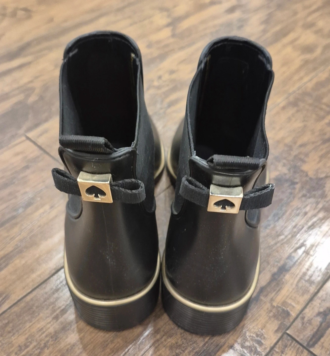 These Kate Spade Chelsea rain boots are perfect for those wet days! They're black and barely worn. Size is 8.5. They have the signature Kate Spade spade logo on the back.