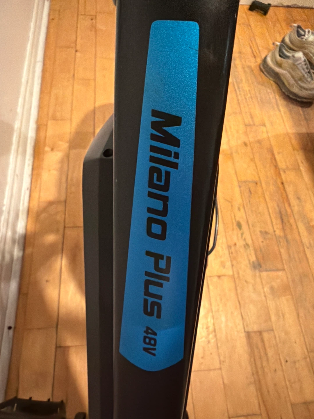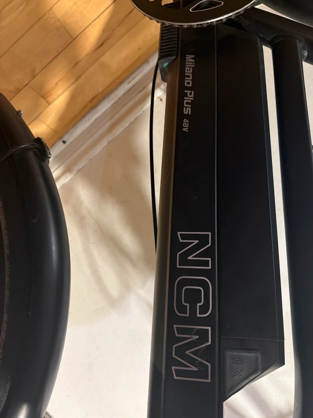 Selling an NCM Milano Plus 48V electric bike. It's in good condition and ready for new adventures! The display shows speed, distance, and battery level. Perfect for getting around town or enjoying a leisurely ride.