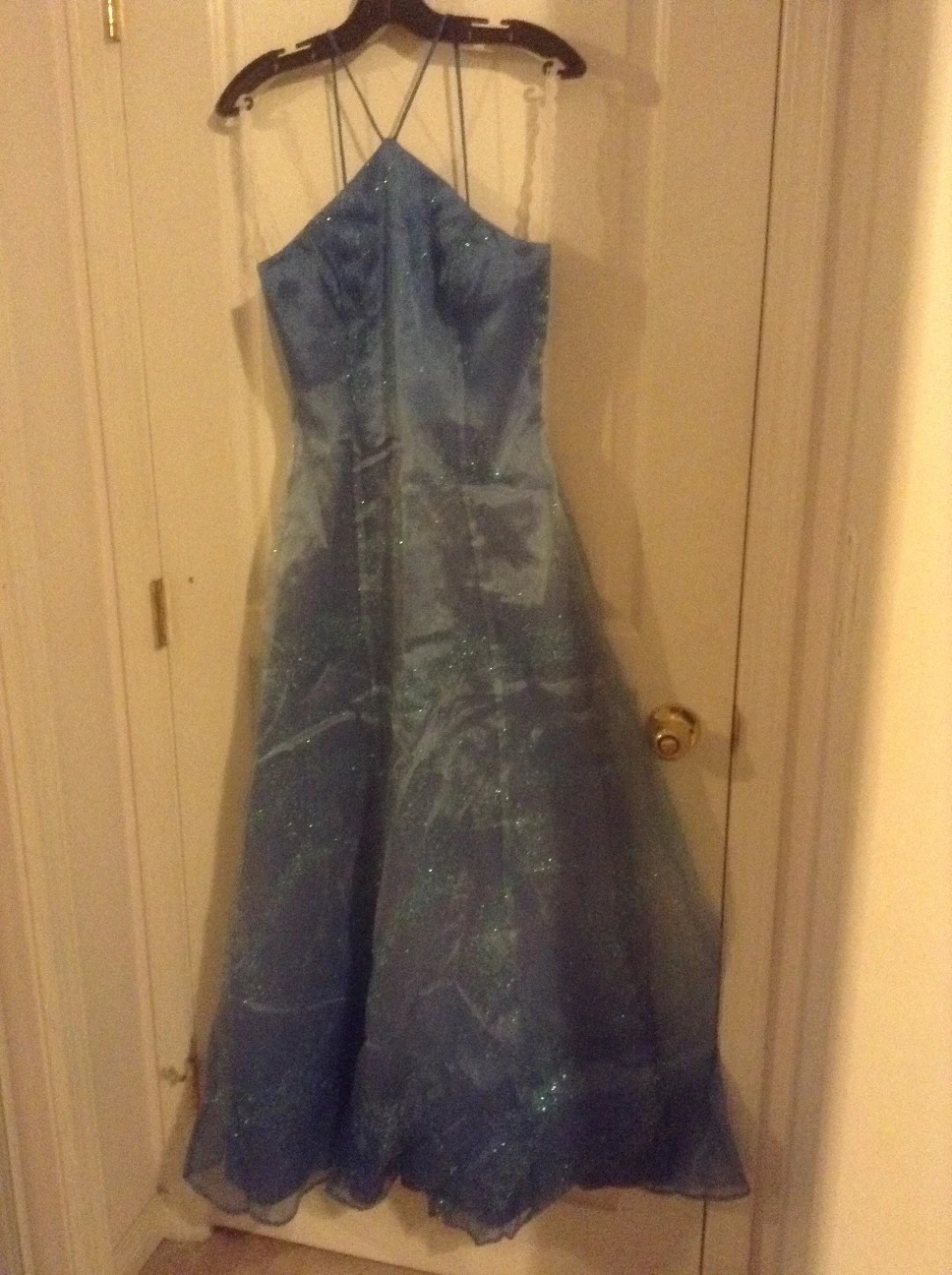 Blue Shine Spaghetti Strap Dress for banquet or prom is still New and never worn banquet dress size 3 and 4 because it was too small for me for my friend's banquet.