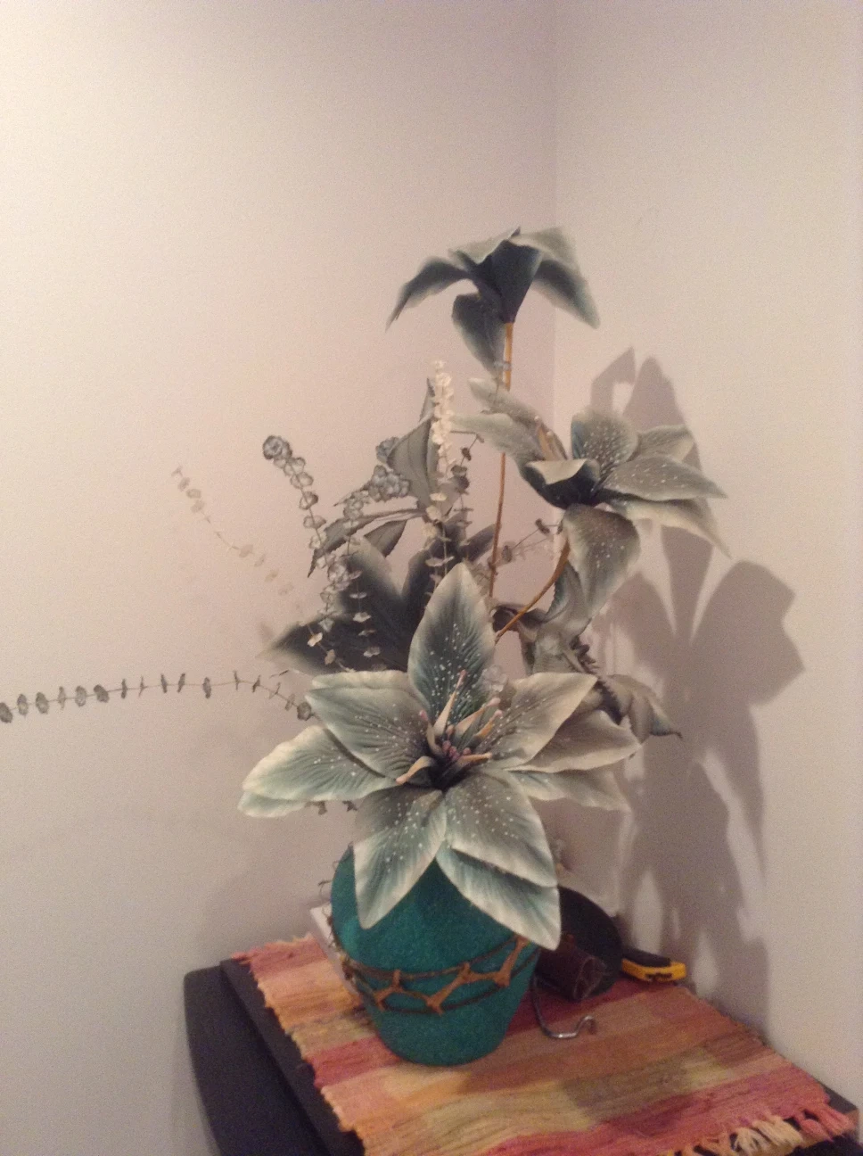 Artificial Fake white and Green artificial flower contained Green ceramic pot and very great condition. It would be useful for dining room, living room and office.