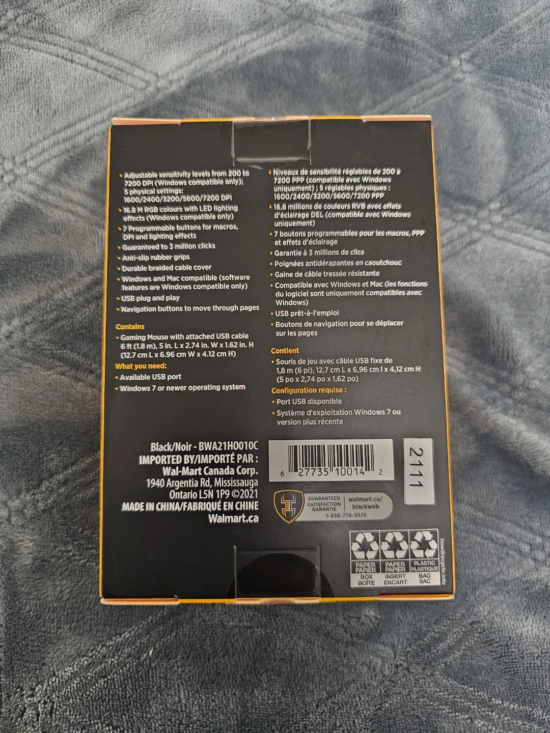 BNIB Adjustable sensitivity levels from 200-7200 DPI (Windows compatible only) 5 physical settings include: 1600/2400/3200/5600/7200 DPI 16.8 M RGB colours with LED lighting effects (Windows compatible only) 7 programmable buttons for macros, DPI and lighting effects Guaranteed 3 million clicks Anti-slip rubber grips Durable braided cable cover Windows and Mac compatible (software features are Windows compatible only) USB plug and play Navigation buttons to move through pages Includes: Gaming Mouse with attached USB cable What you need: Available USB port Windows 7 or newer operating system FINAL SALE Accepting cash only please