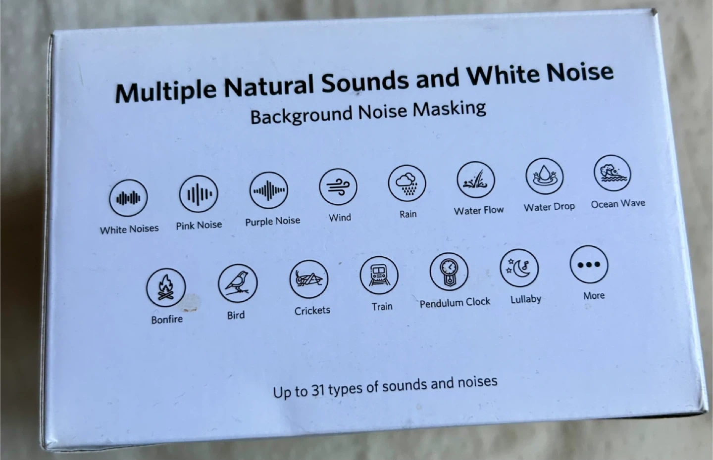 Selling an AIRSEE white noise machine! It comes with multiple natural sounds and white noise options for background noise masking. Up to 31 types of sounds and noises. Practically new.