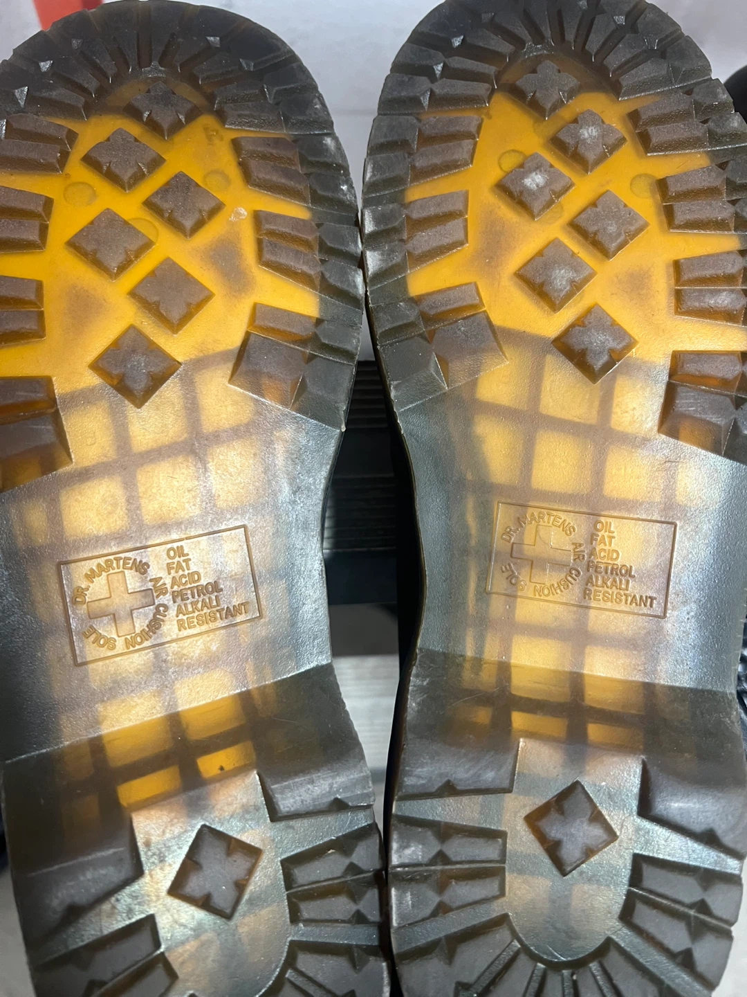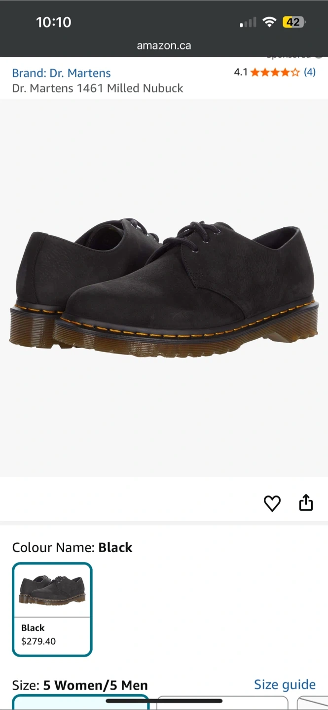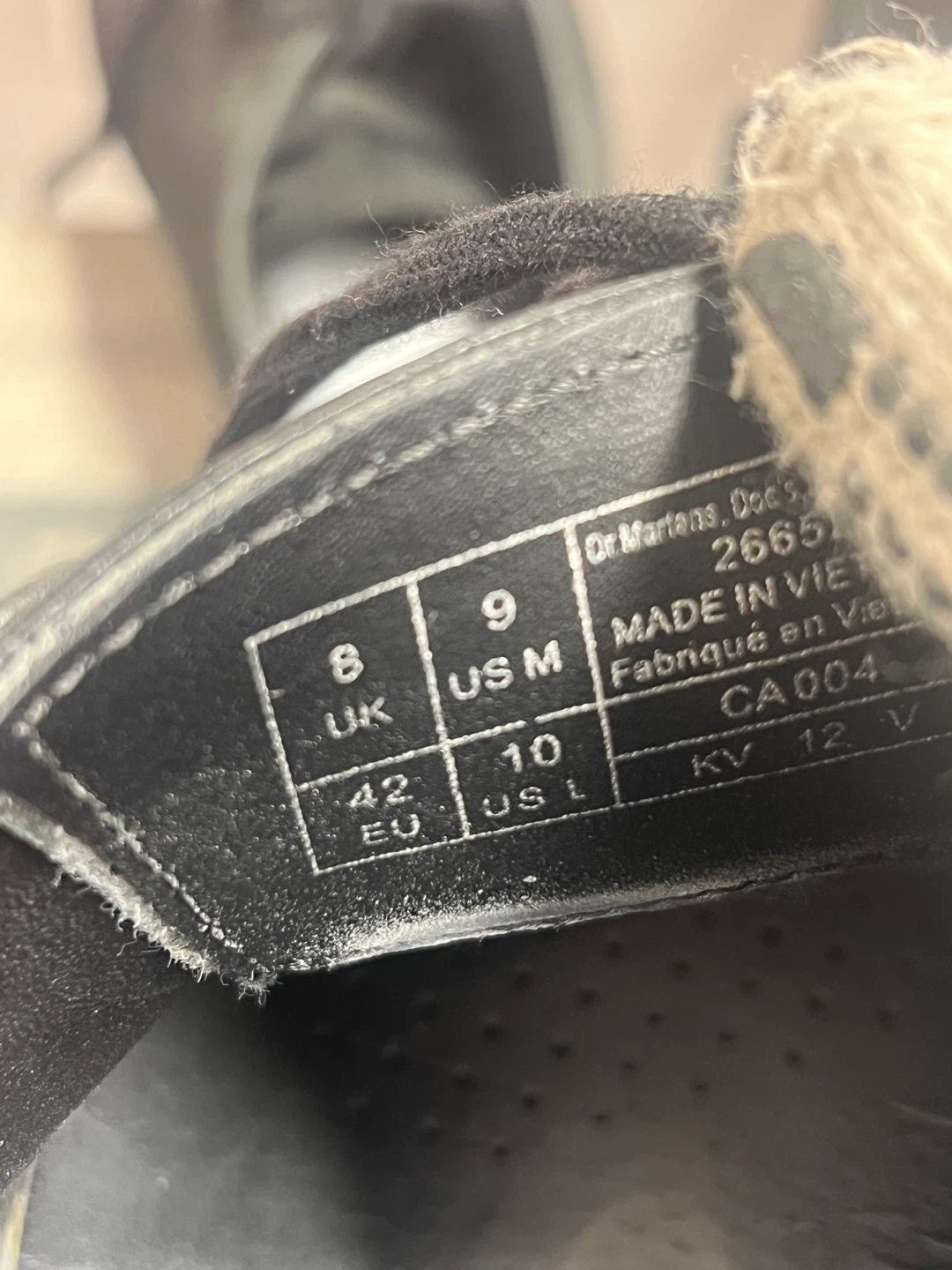 Selling a pair of Dr. Martens 1461 Milled Nubuck shoes in black. They are in good condition with some signs of wear. The size is Men's US 9.