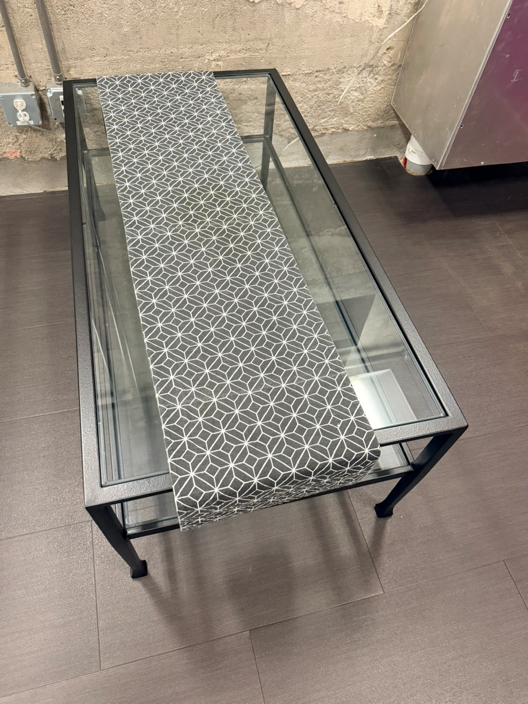 Free coffee table with a glass top and a sleek black frame can take runner if you want it. About 2.5 x 4.5’. Available M-F 9-4. Beatty & Smithe no onsite parking but a cut through lane for delivery drivers. Respond with date and time you would like to pick up to get address and instructions.