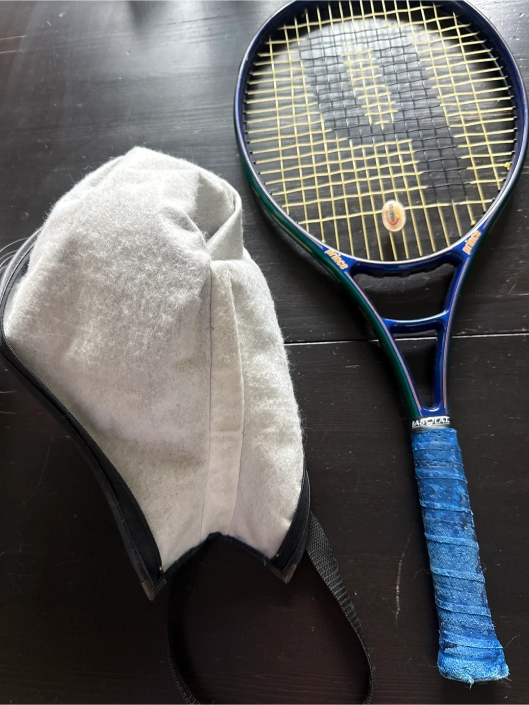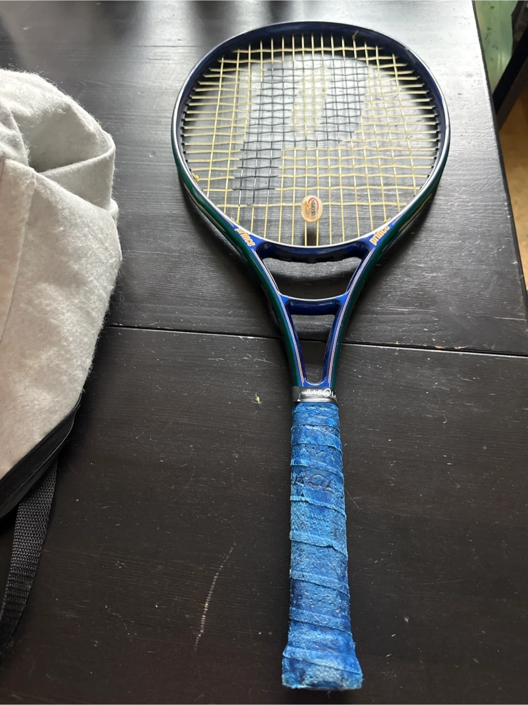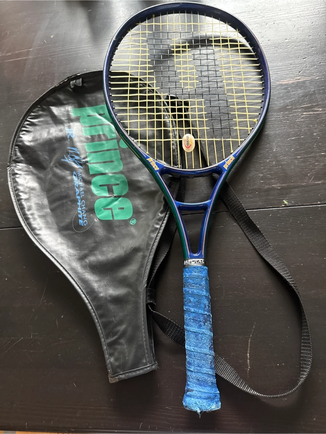 Selling a Prince Michael Chang Graphite tennis racquet! It comes with its original cover. The grip is blue and shows some wear, but the racquet itself is in good shape. Great for hitting the courts!