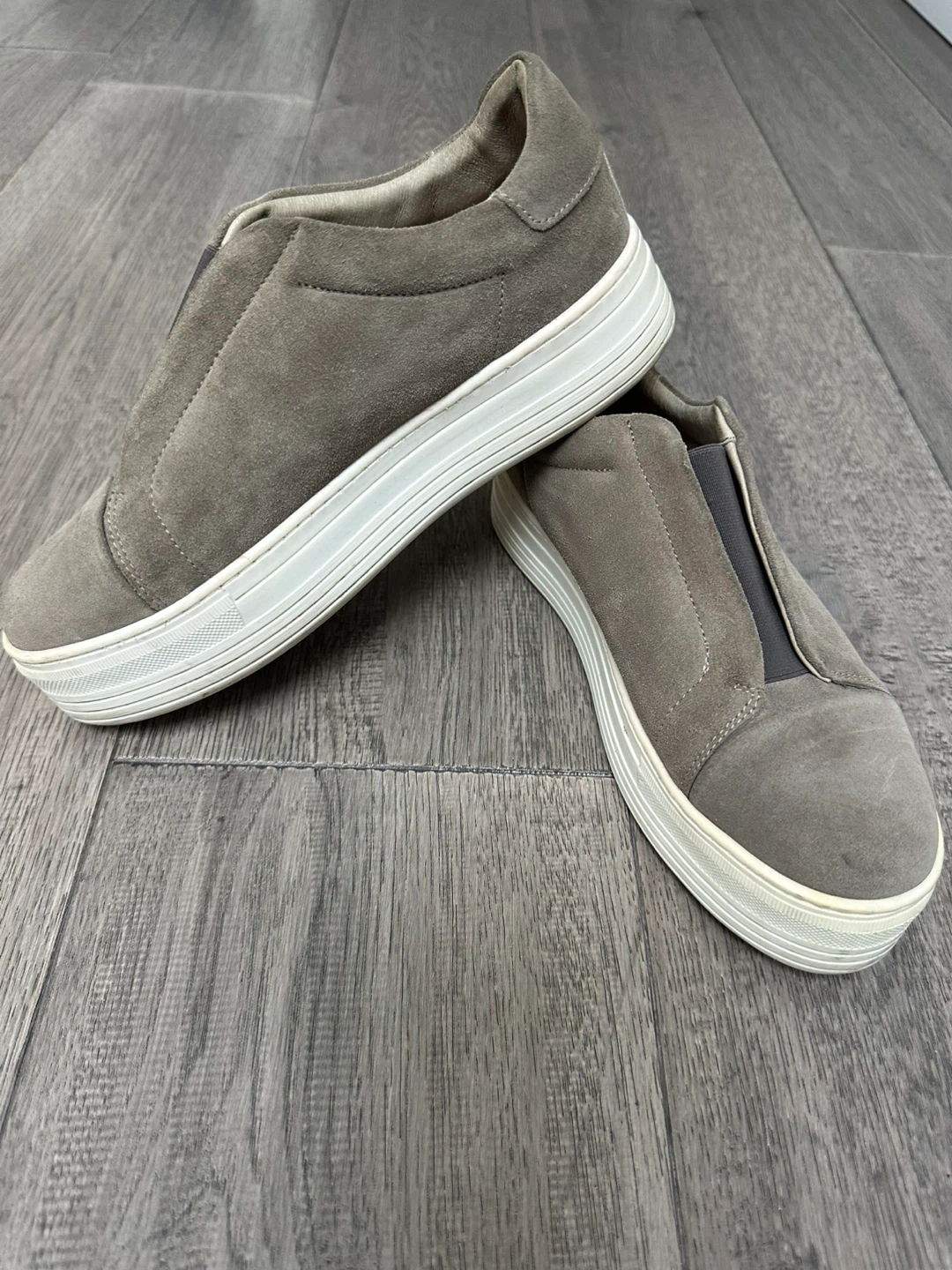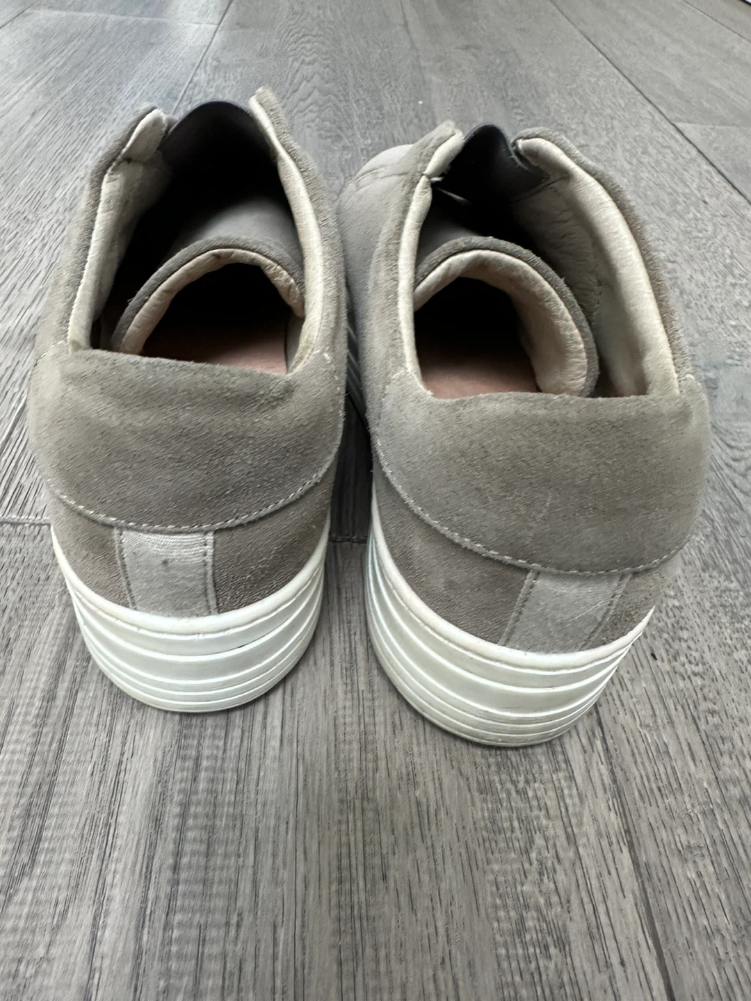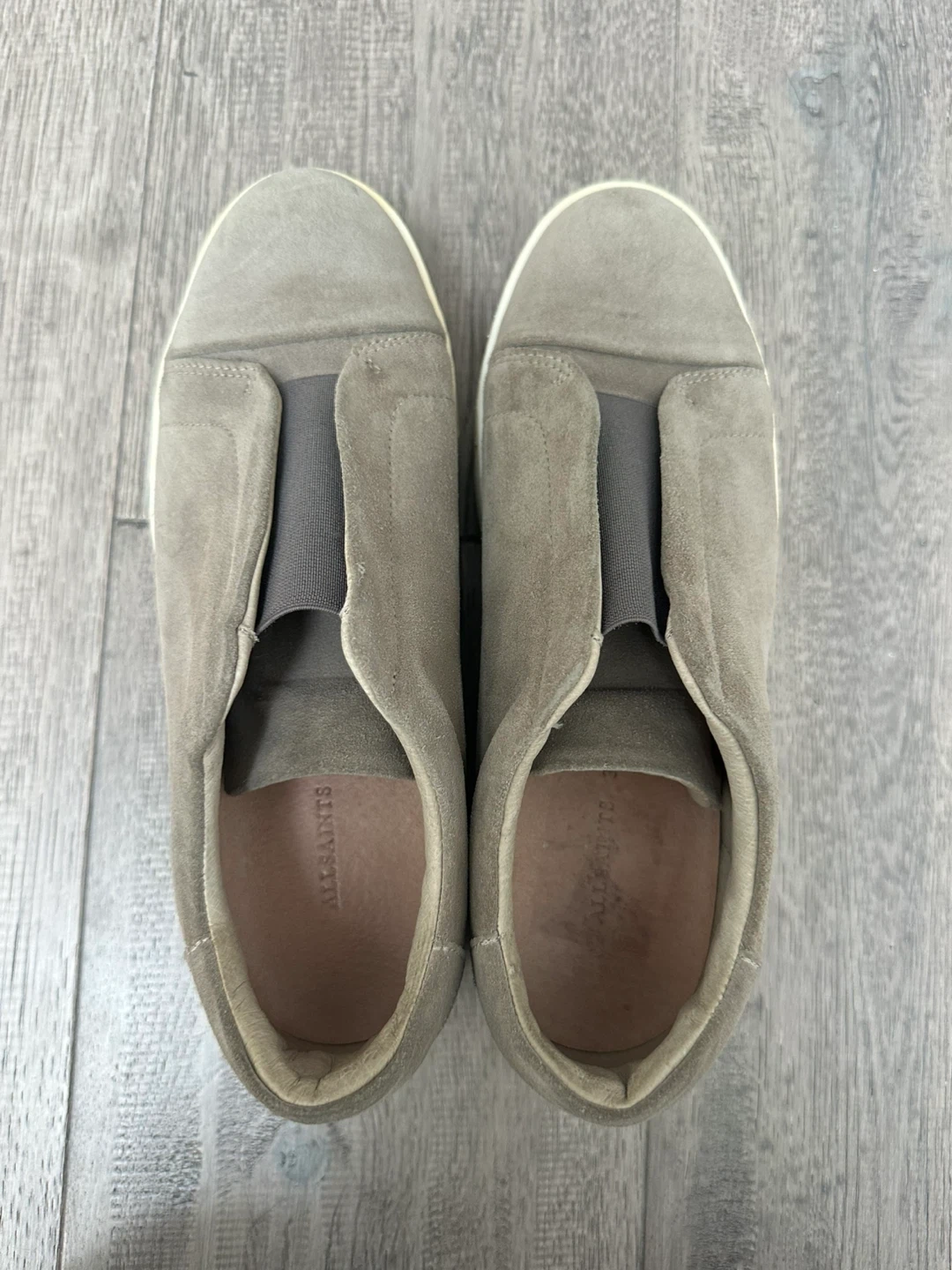 Selling a pair of AllSaints slip-on sneakers! They're a stylish and comfortable choice for everyday wear. These are a size 38 and made of suede material in a grey colour. Perfect for adding a touch of casual cool to your outfit!