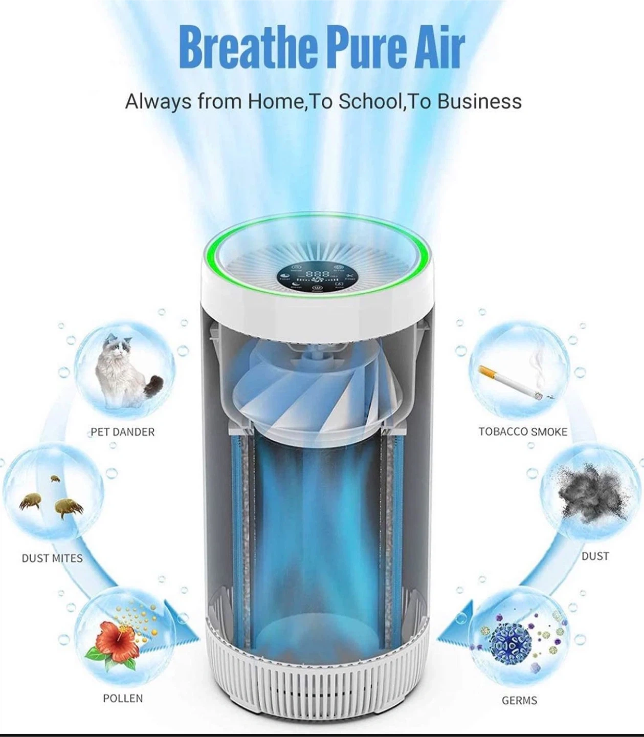 3-in-1 AIR PURIFIER FOR HOME-- ASLOTUS Air Purifiter with advanced 3 stages filtration system.The pre-filter traps large particles such as hair, pet fur, lint, and fibs. The True HEPA filter can capture 99. 97% of airborne particles as small as 0.3 microns, included pet dander, pollen, dust. The photocatalysis filter adsorbs awful smell from pets, smoke, and cooking. Effectively improving indoor air quality and freely enjoying fresh air at home.
