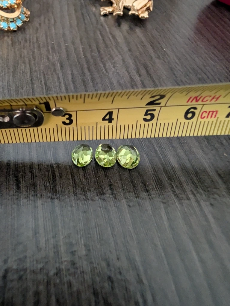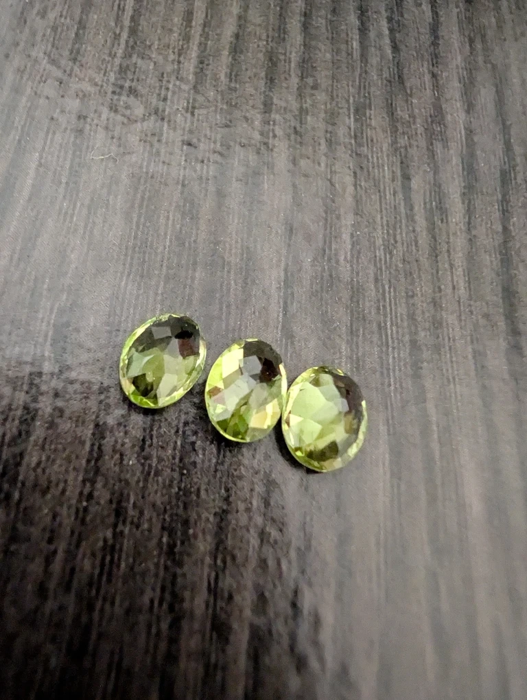 Here's a set of three lovely peridot gemstones! They measure about 1.5 inches in length together. Perfect for jewelry making or collecting.