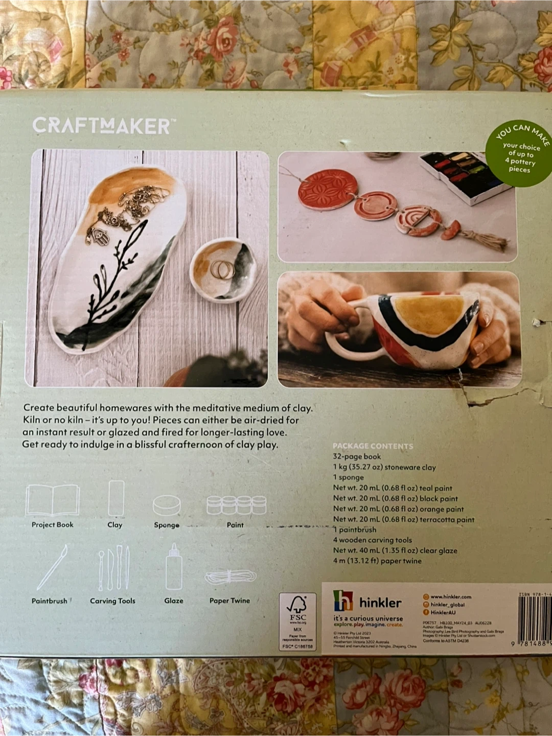 Get creative with this Craftmaker Handmade Pottery Kit Deluxe! It includes everything you need to make a mug, jewellery dish, bud vase and wall hanger. Unleash your inner artist and shape and sculpt your own perfect pieces!
