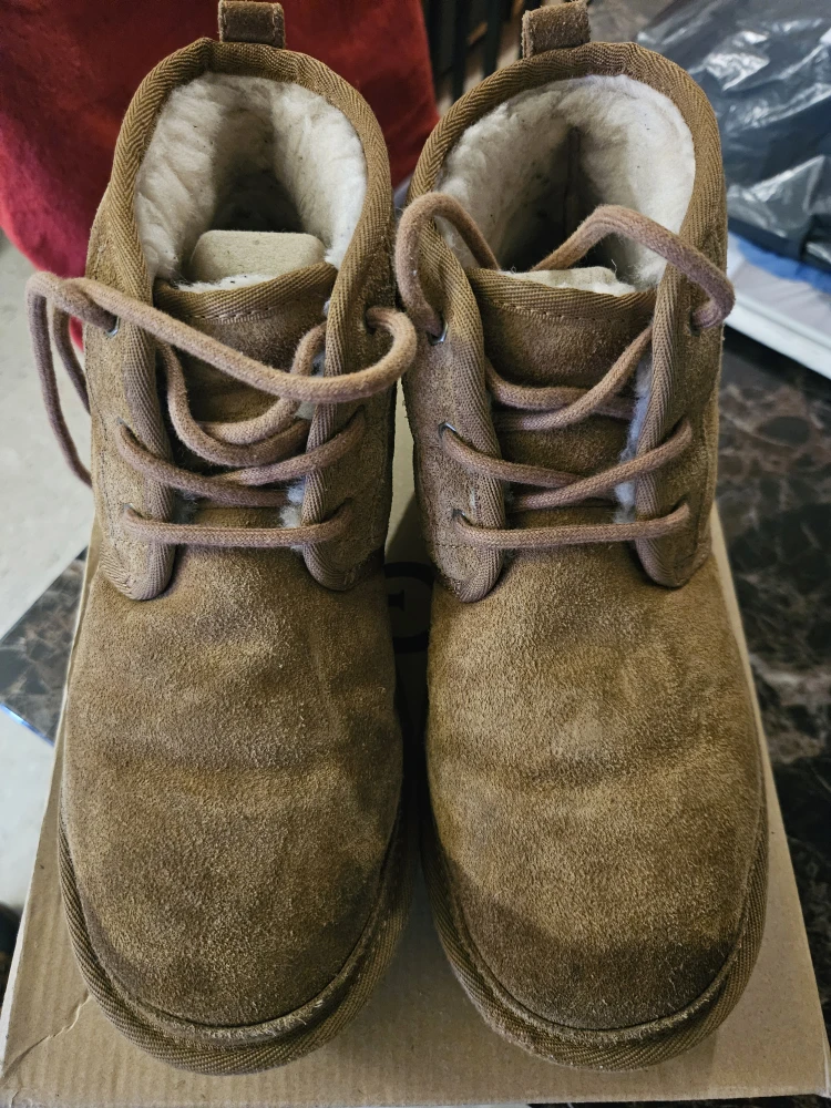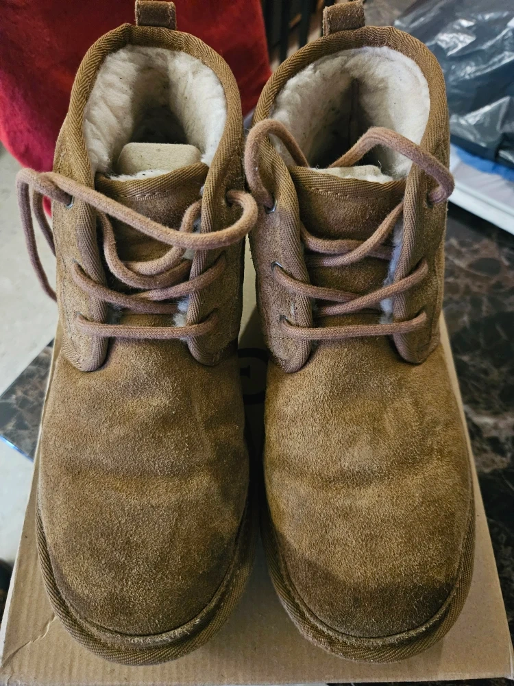 Selling a pair of Neumel UGGS in a nice brown/chestnut color. They are a size 6 and come with the original box! A good cleaners service can bring these boots back to new!