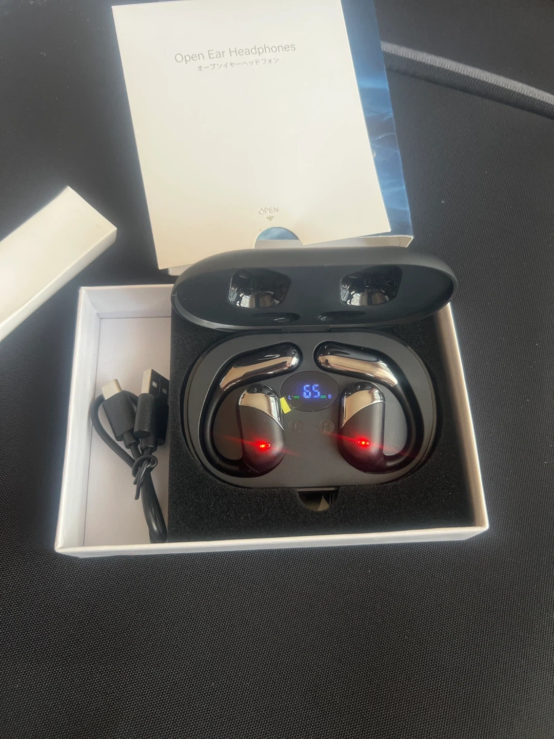 Selling a pair of open ear headphones. They are like new and come with the box and charging cable. Great for listening to music or podcasts while still being aware of your surroundings!