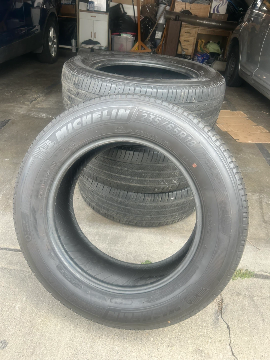 1 / 31 / 3Buy & SellMichelin 235/65R18 Tires - Set of 4Michelin 235/65R18 Tires - Set of 4$180Selling a set of four used Michelin tires, size 235/65R18. They are in good condition and ready for your vehicle!WHERE TO MEETCheck LocationView MapSELLERIanHermosa100 reviews7 chats·1 favorites·215 viewsSEND CHAT TO SELLERHi Ian! I’m interested in your listing.Hi Ian! I’m interested in your listing.Get the Karrot app to chatSign In to chat